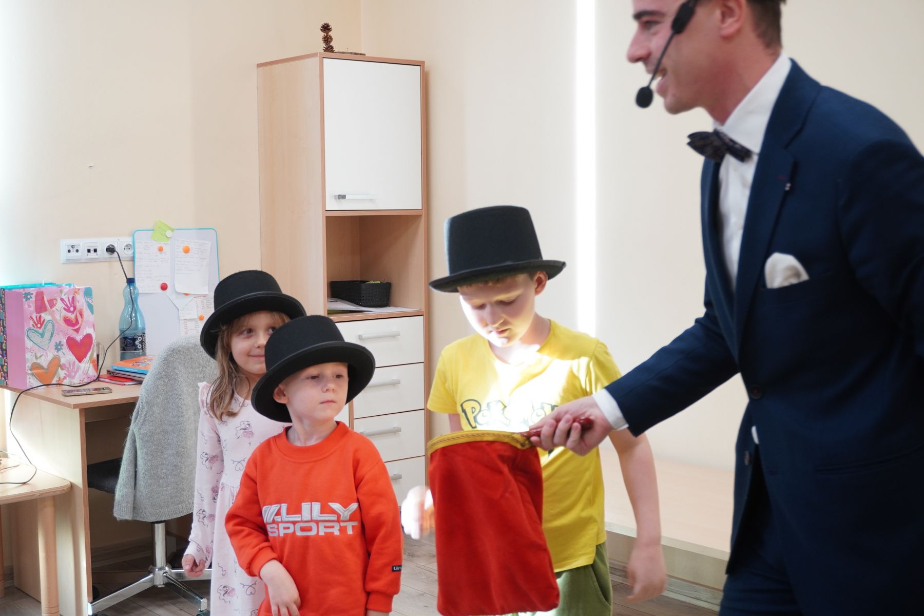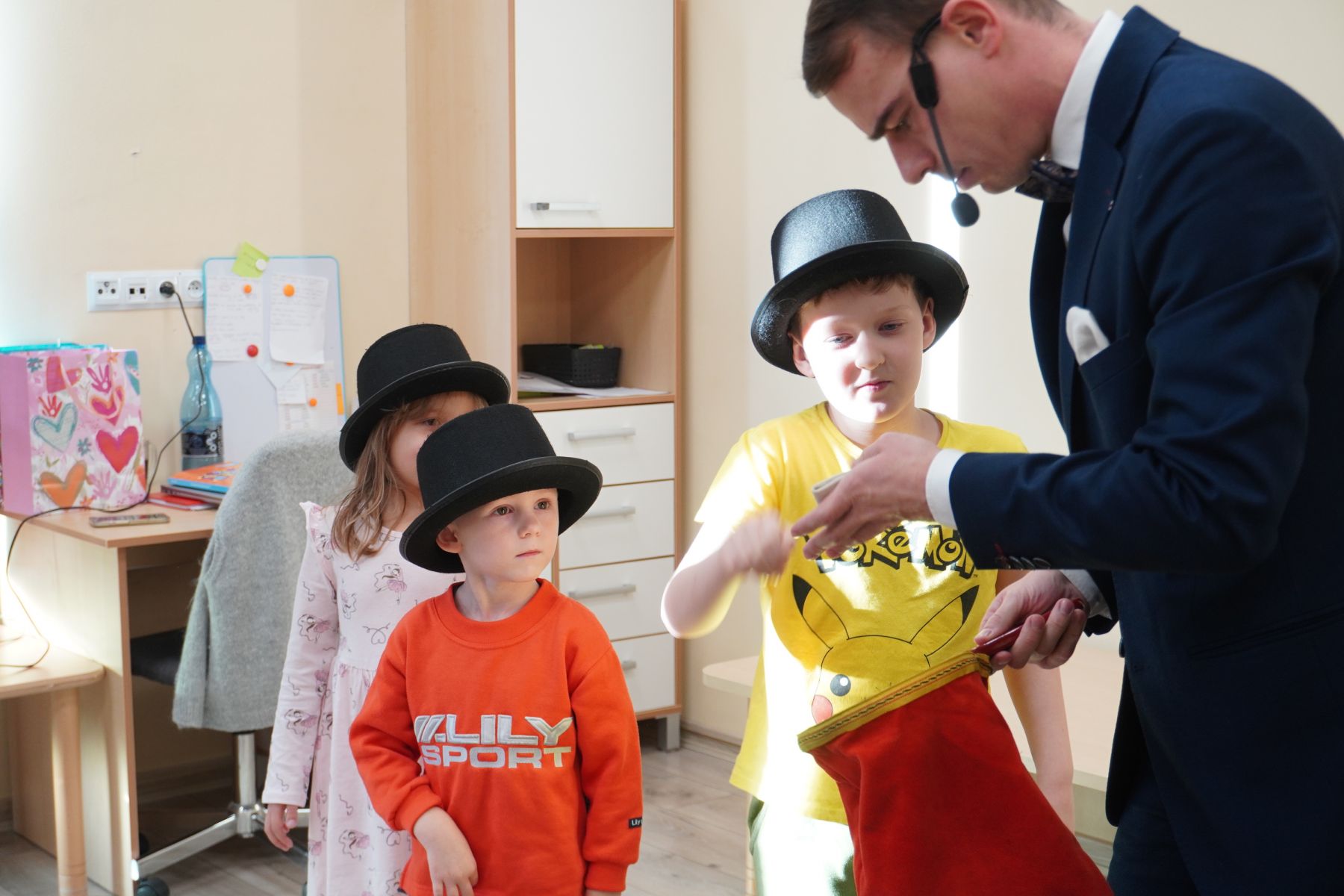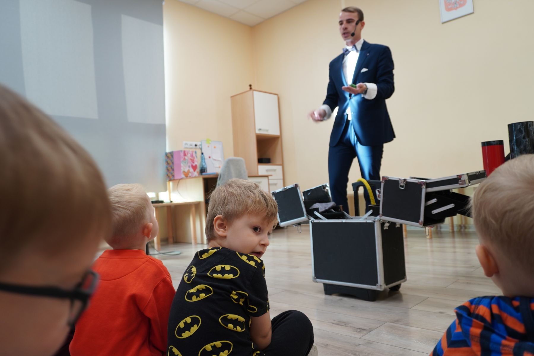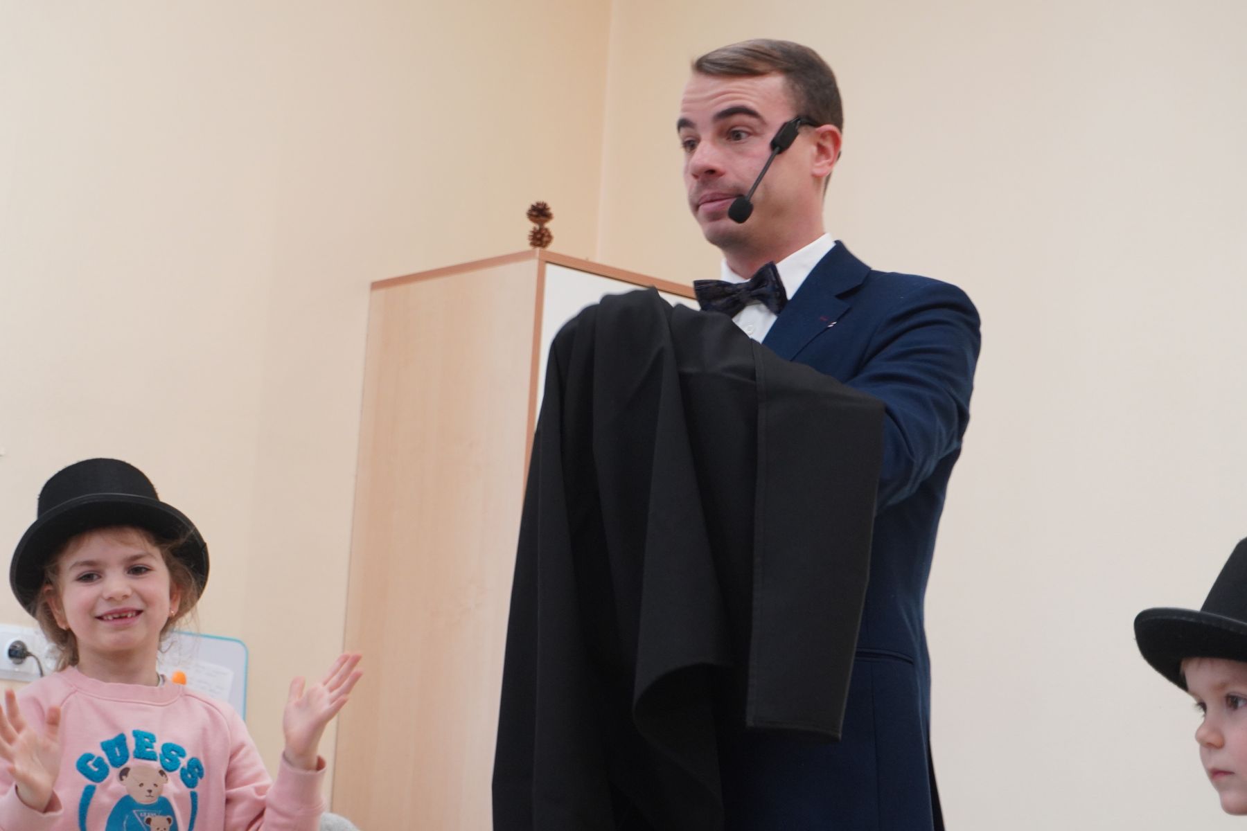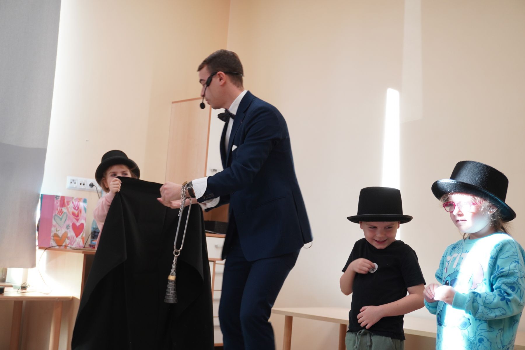 Iluzjonista wciągnął dzieci do wspólnej zabawy, pozwalając im stać się małymi asystentami w swoich pokazach. Każdy występ wywoływał salwy śmiechu i zachwytu, a atmosfera w sali była pełna pozytywnej energii. Dzieci z zapartym tchem obserwowały każdy ruch magika, próbując odkryć tajemnice jego sztuczek.