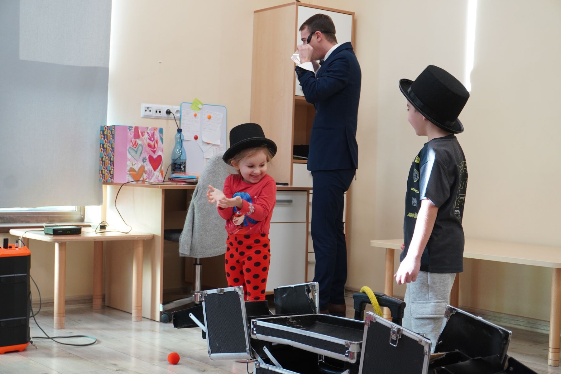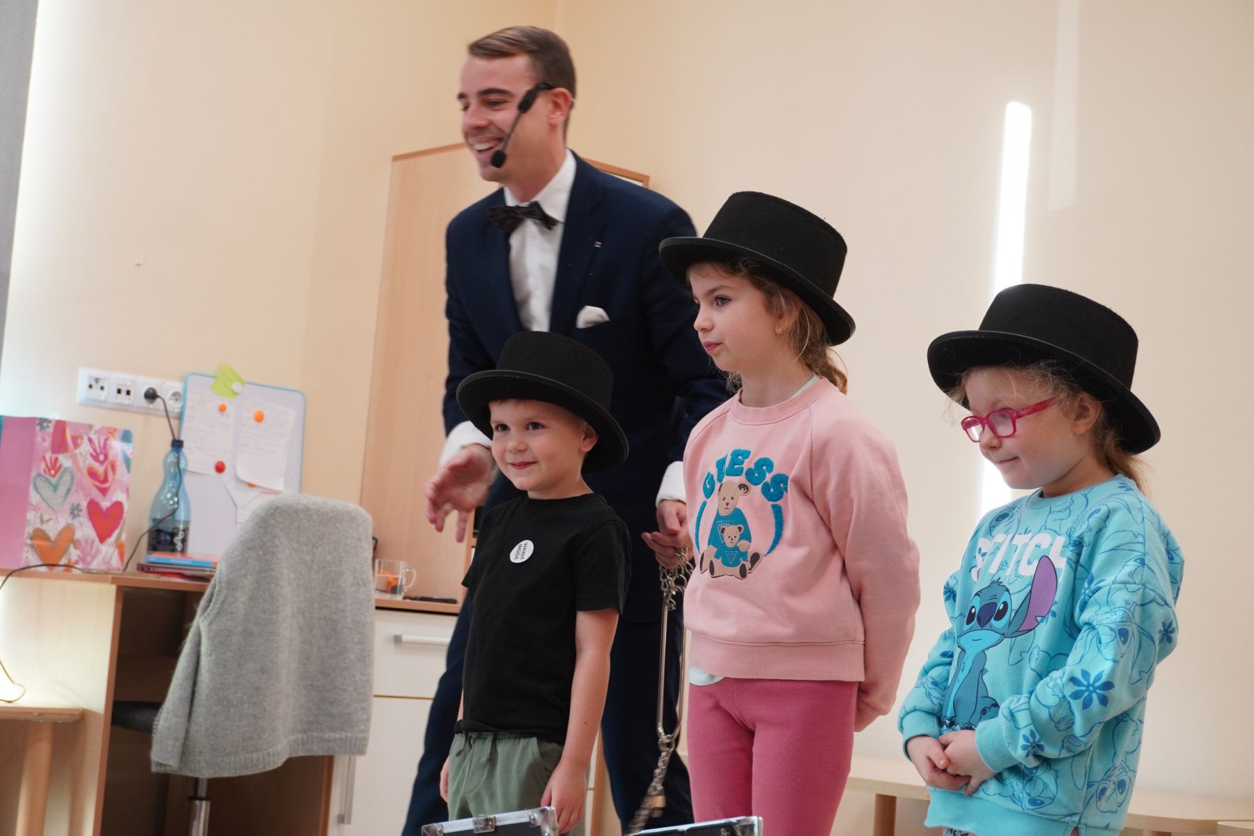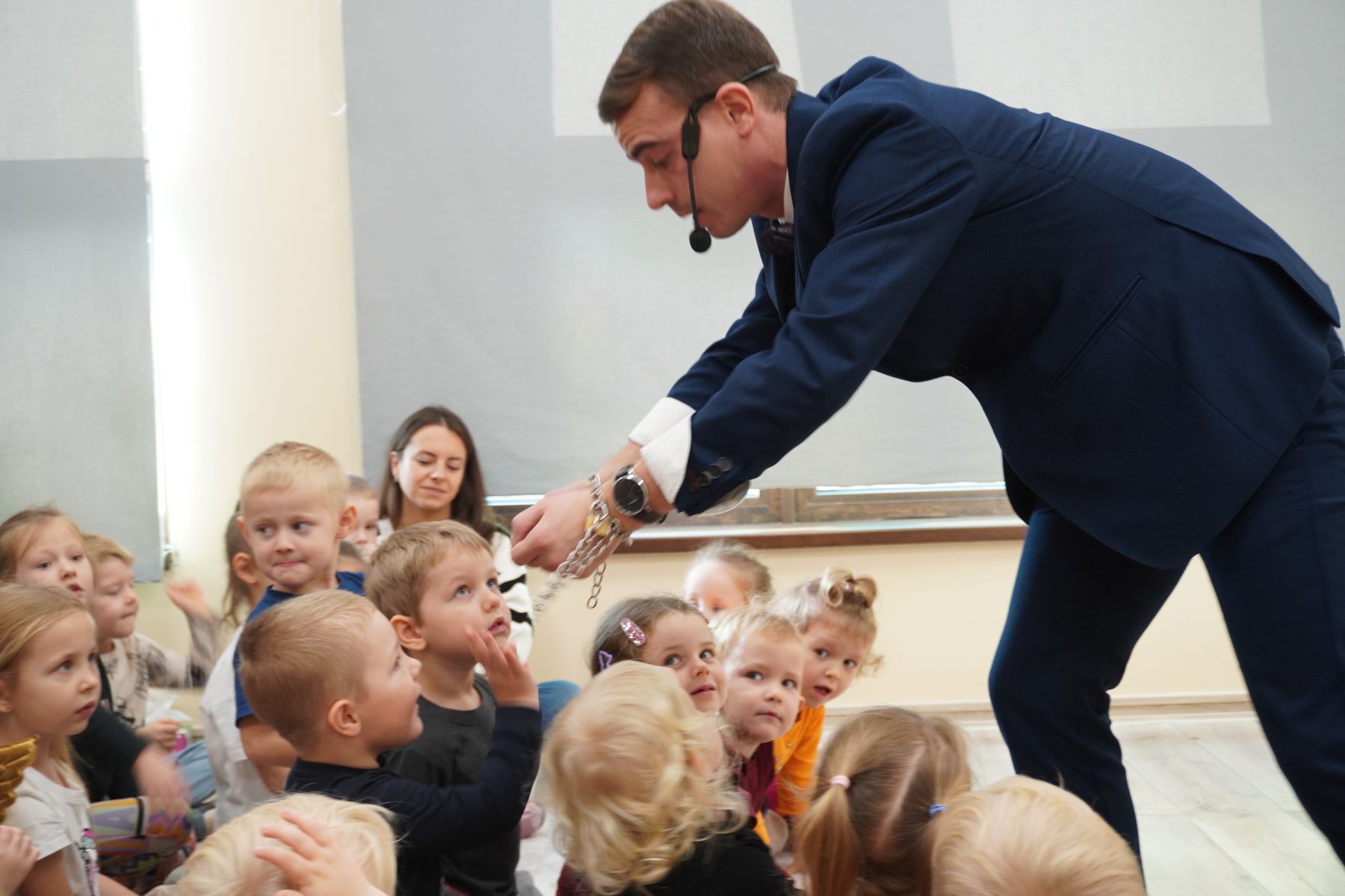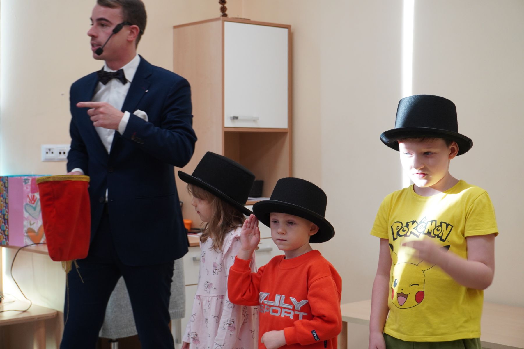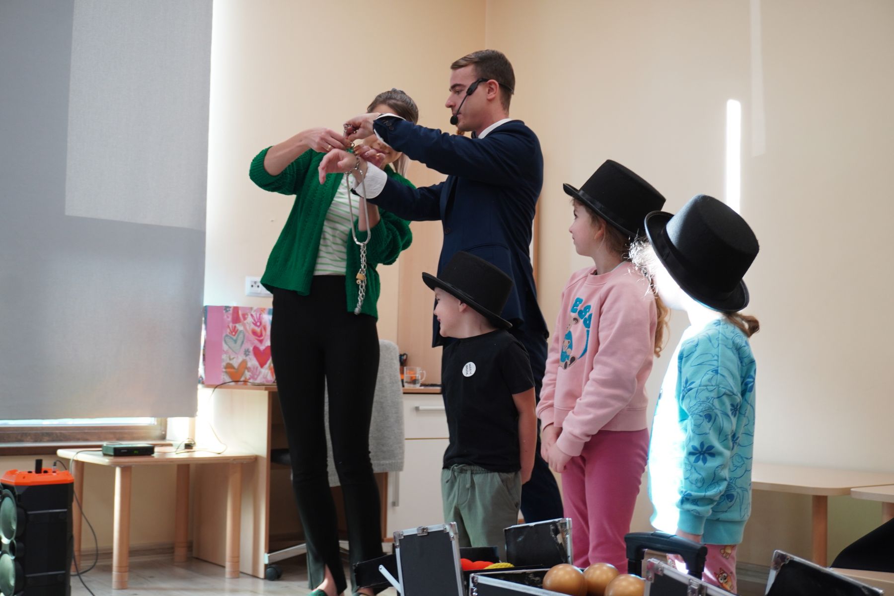Iluzjonista wciągnął dzieci do wspólnej zabawy, pozwalając im stać się małymi asystentami w swoich pokazach. Każdy występ wywoływał salwy śmiechu i zachwytu, a atmosfera w sali była pełna pozytywnej energii. Dzieci z zapartym tchem obserwowały każdy ruch magika, próbując odkryć tajemnice jego sztuczek.