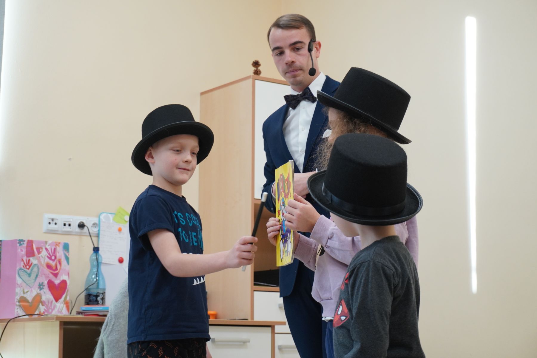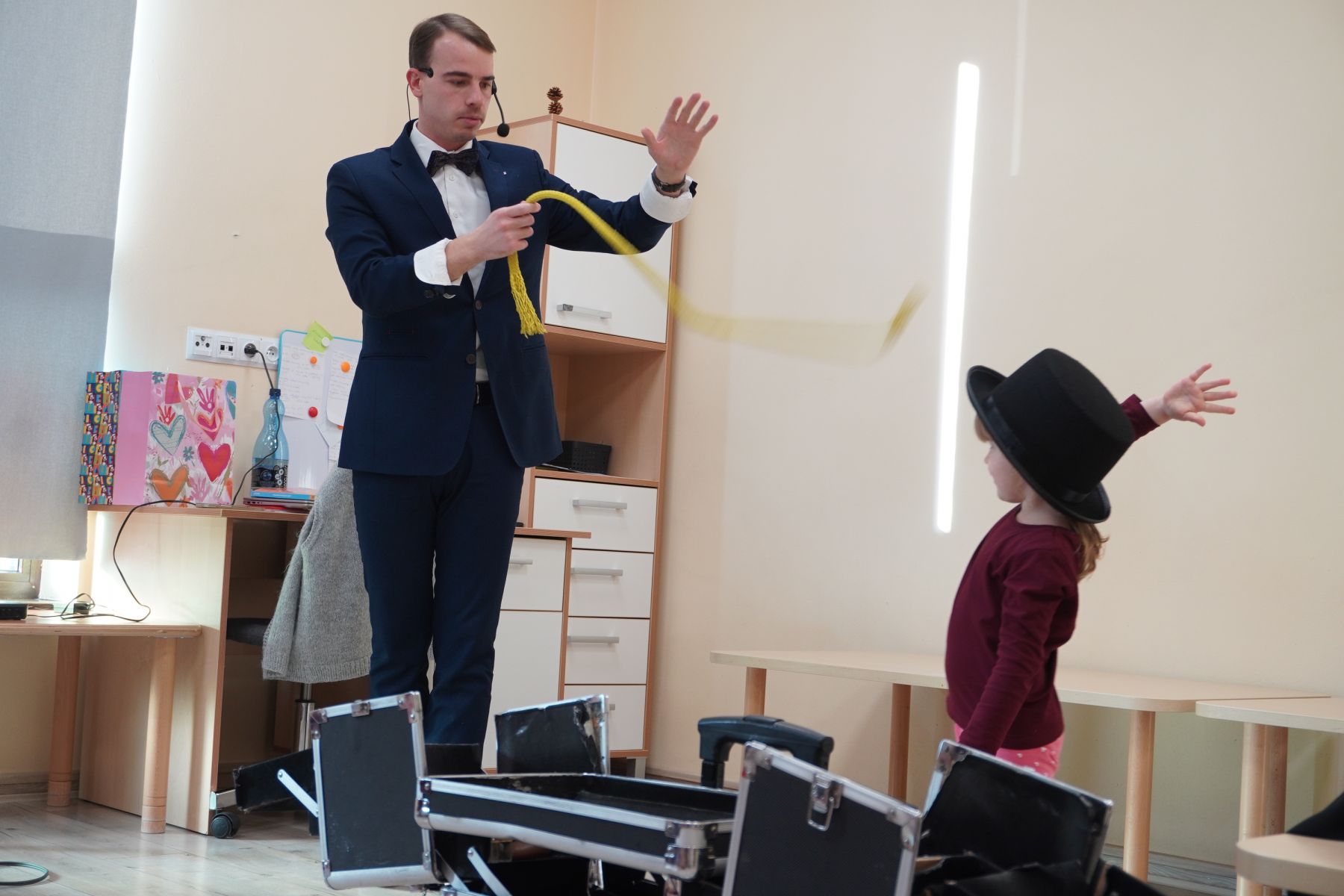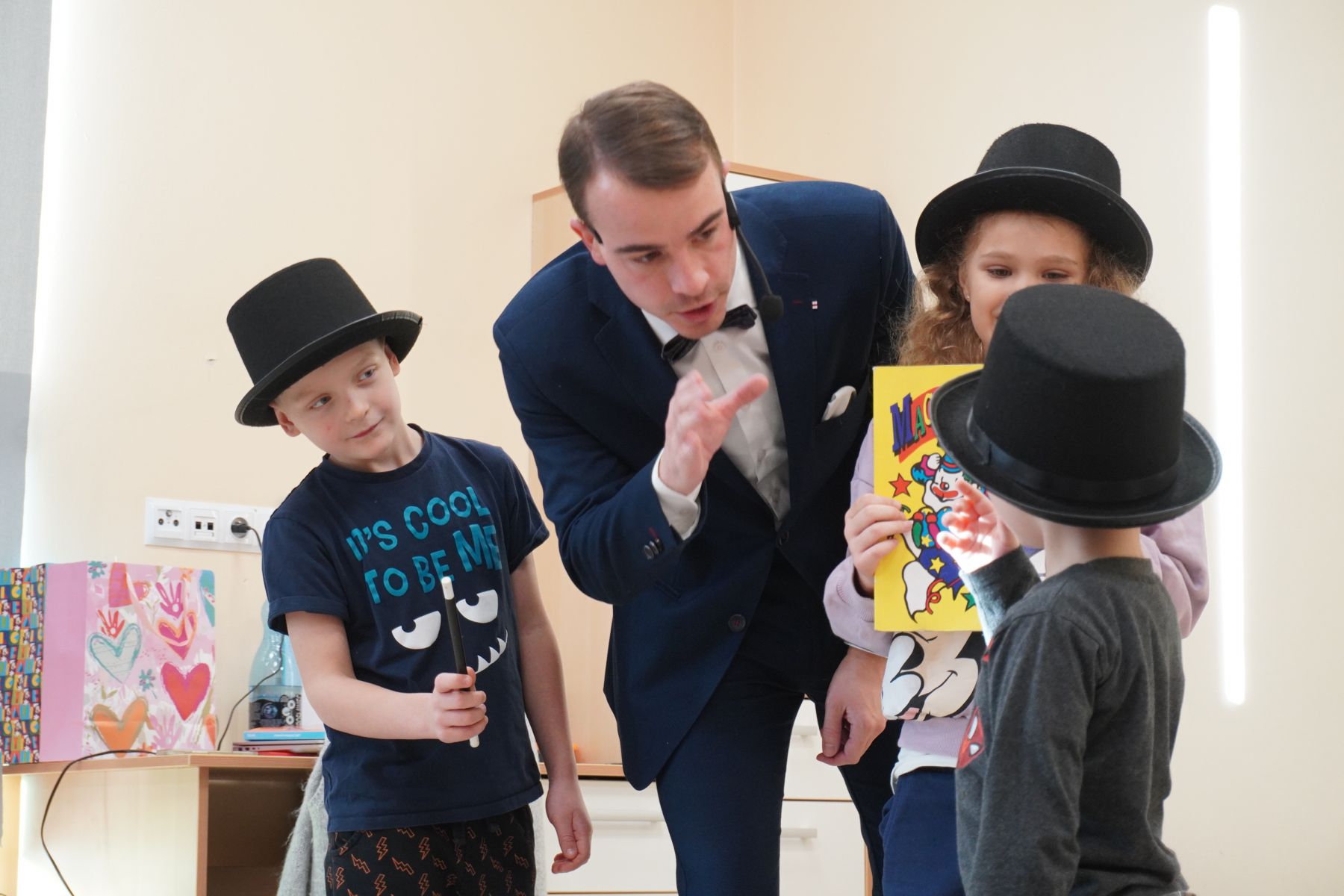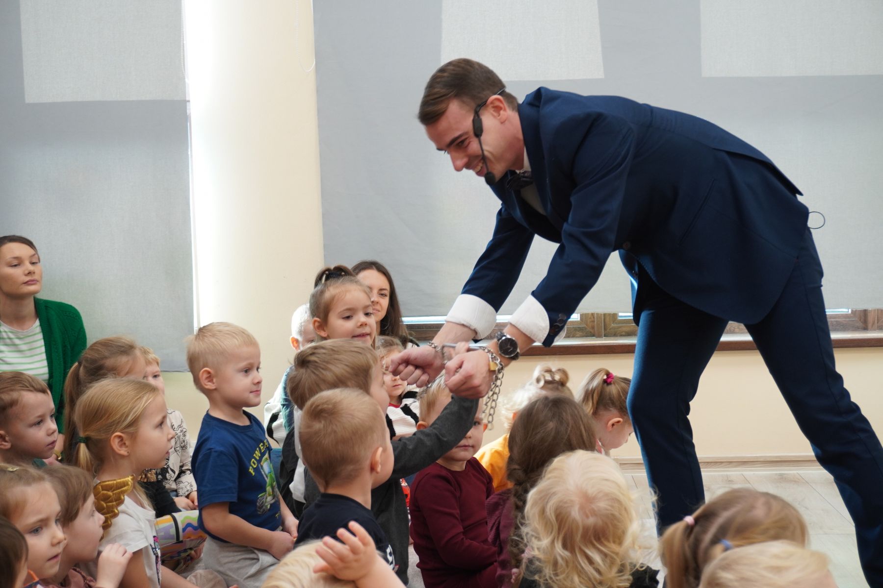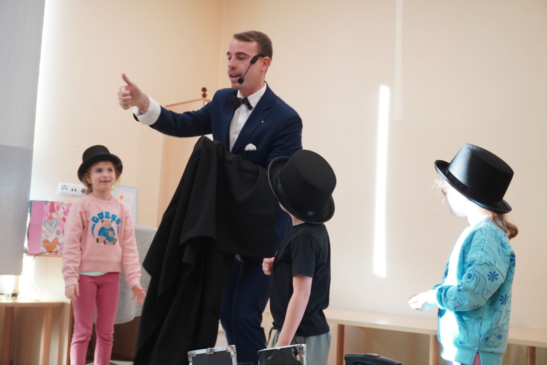 Iluzjonista wciągnął dzieci do wspólnej zabawy, pozwalając im stać się małymi asystentami w swoich pokazach. Każdy występ wywoływał salwy śmiechu i zachwytu, a atmosfera w sali była pełna pozytywnej energii. Dzieci z zapartym tchem obserwowały każdy ruch magika, próbując odkryć tajemnice jego sztuczek.