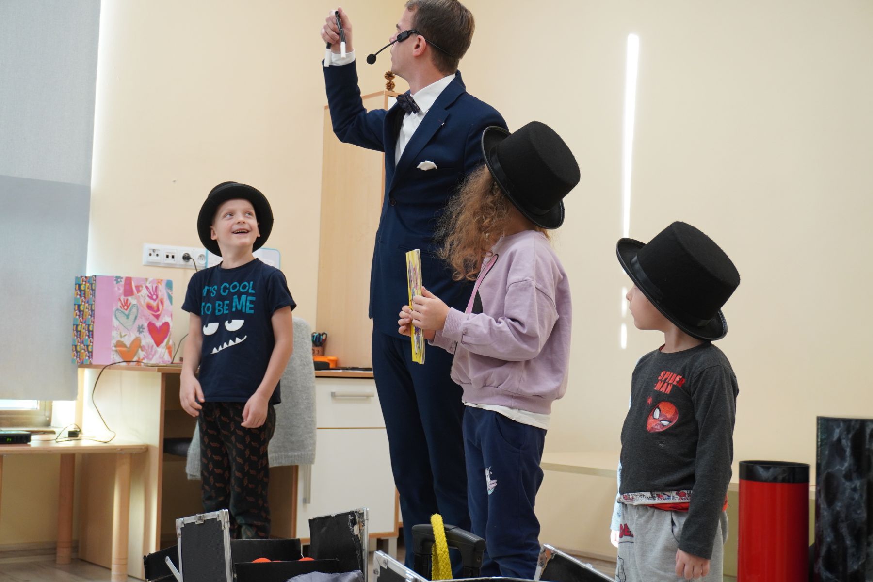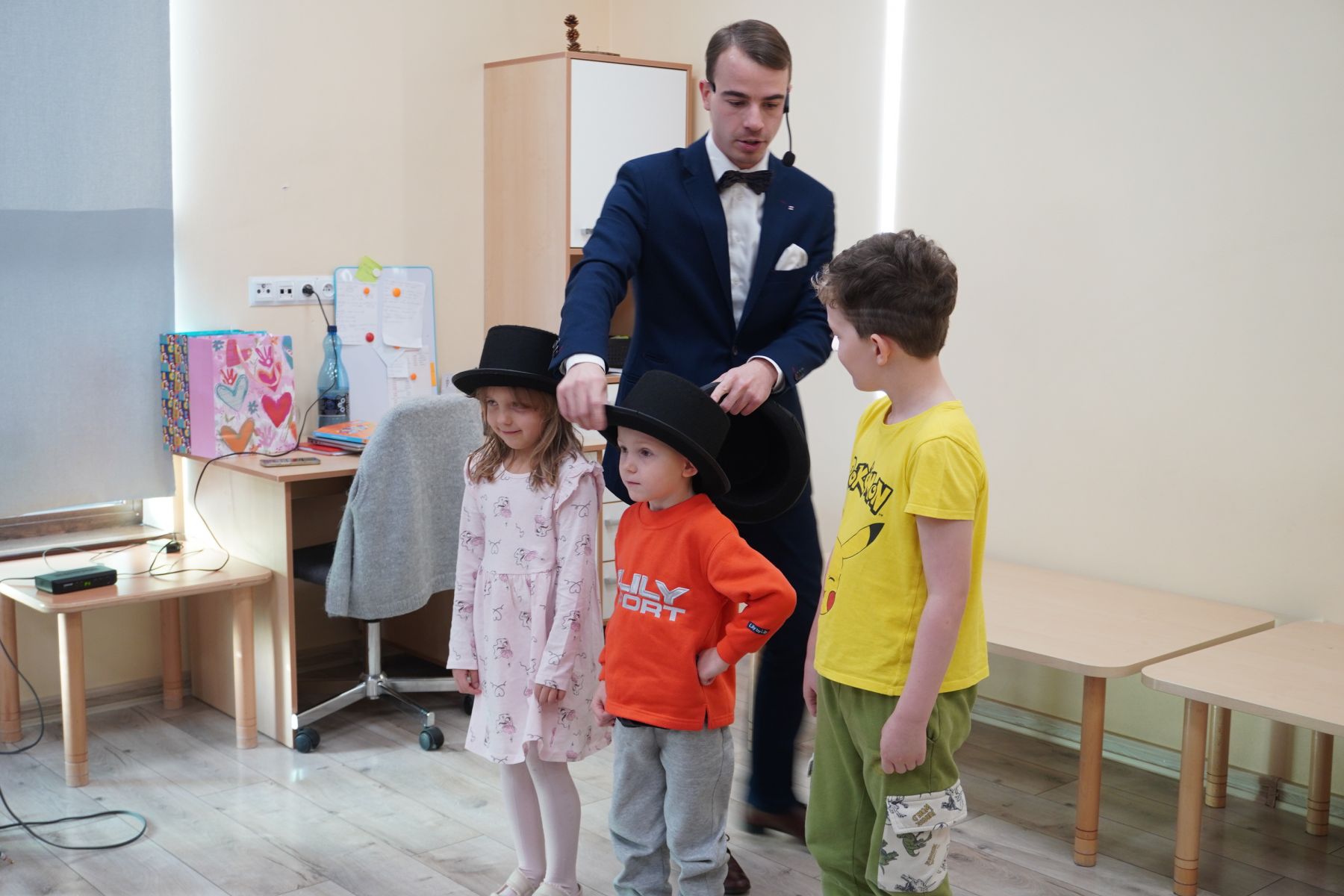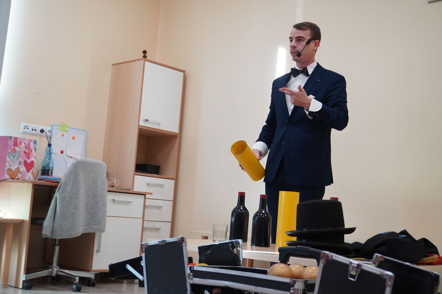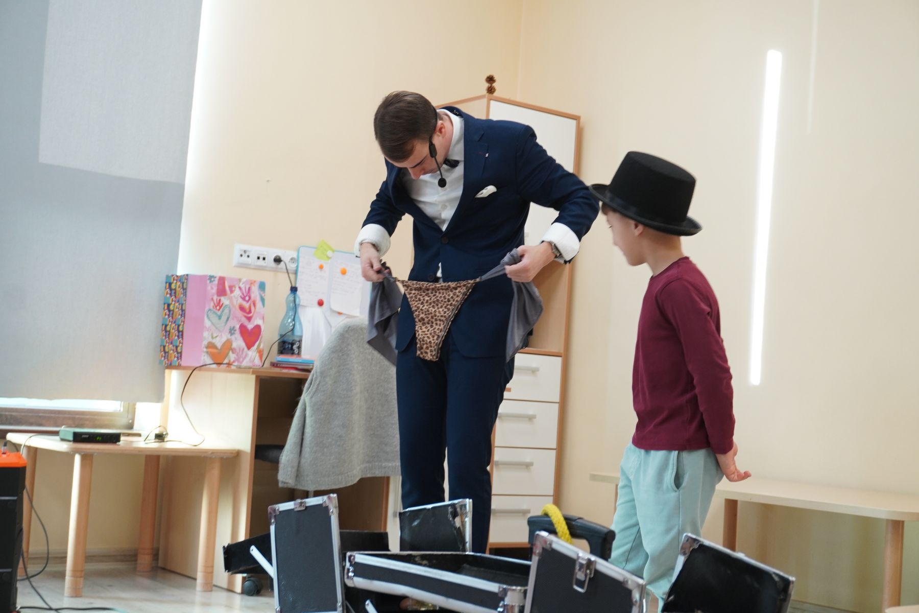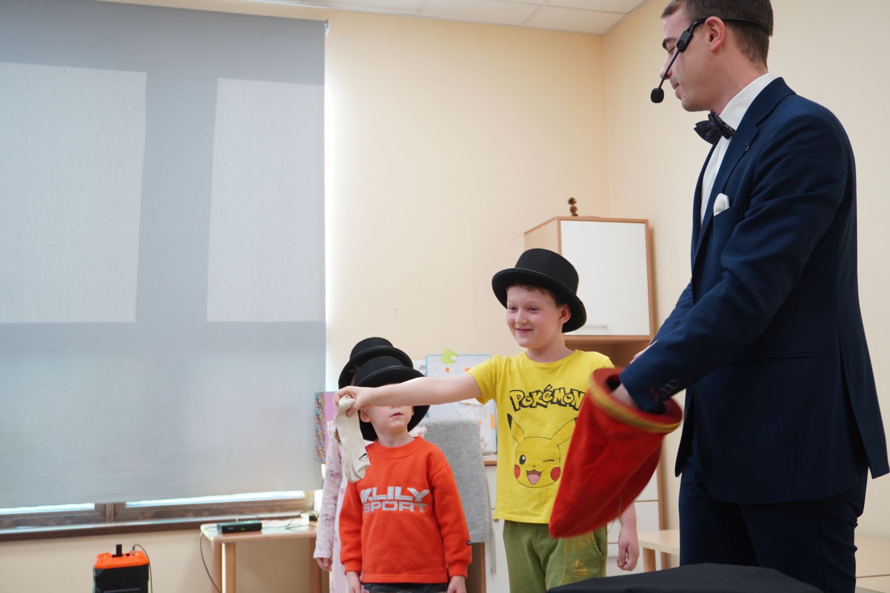 Iluzjonista wciągnął dzieci do wspólnej zabawy, pozwalając im stać się małymi asystentami w swoich pokazach. Każdy występ wywoływał salwy śmiechu i zachwytu, a atmosfera w sali była pełna pozytywnej energii. Dzieci z zapartym tchem obserwowały każdy ruch magika, próbując odkryć tajemnice jego sztuczek.