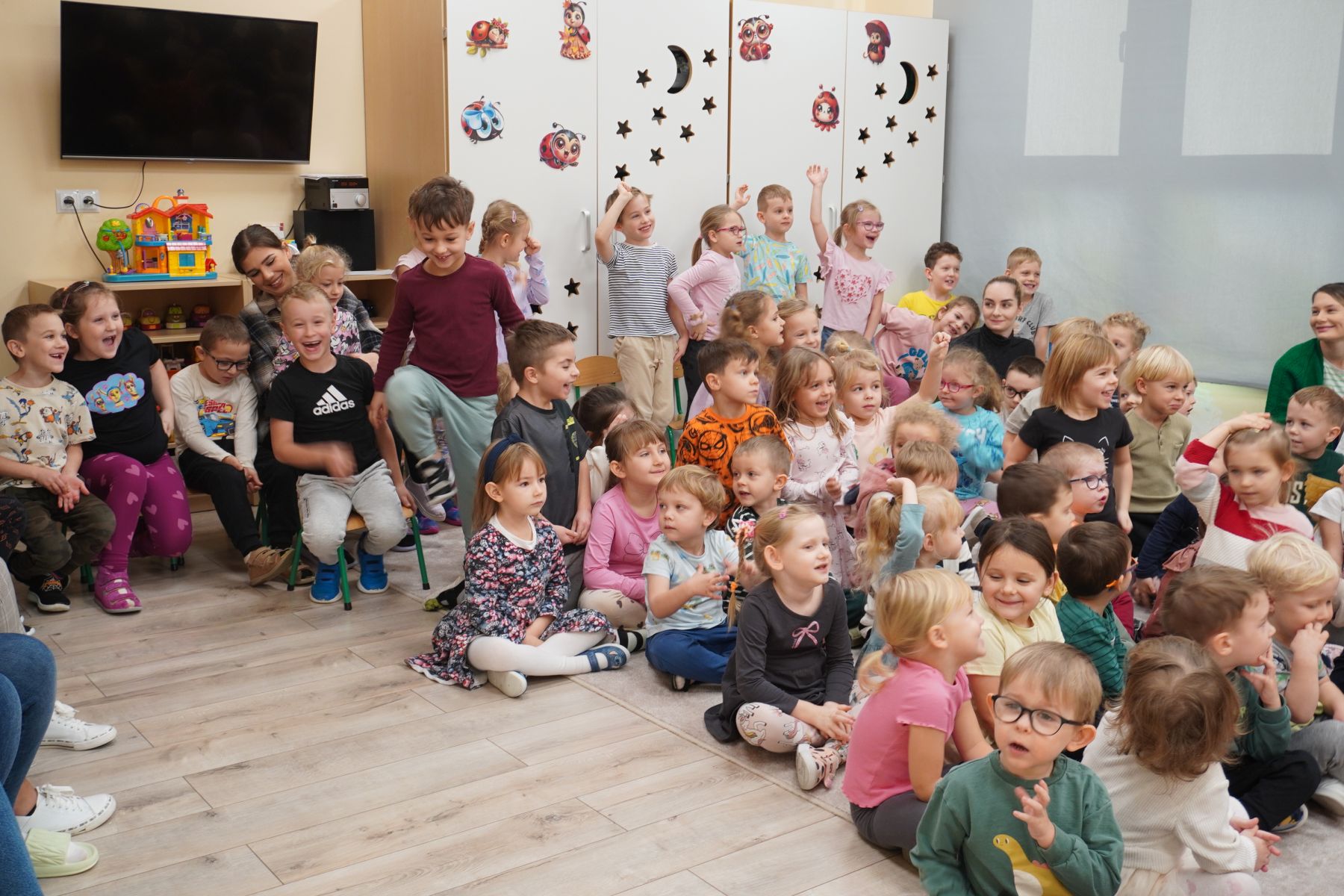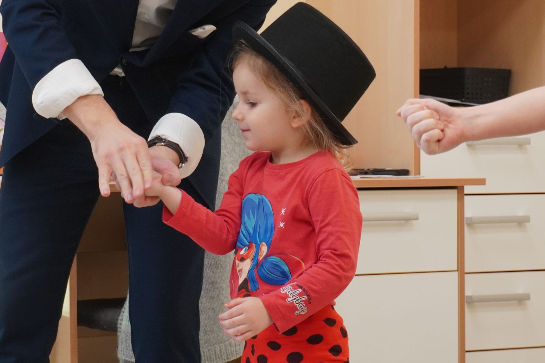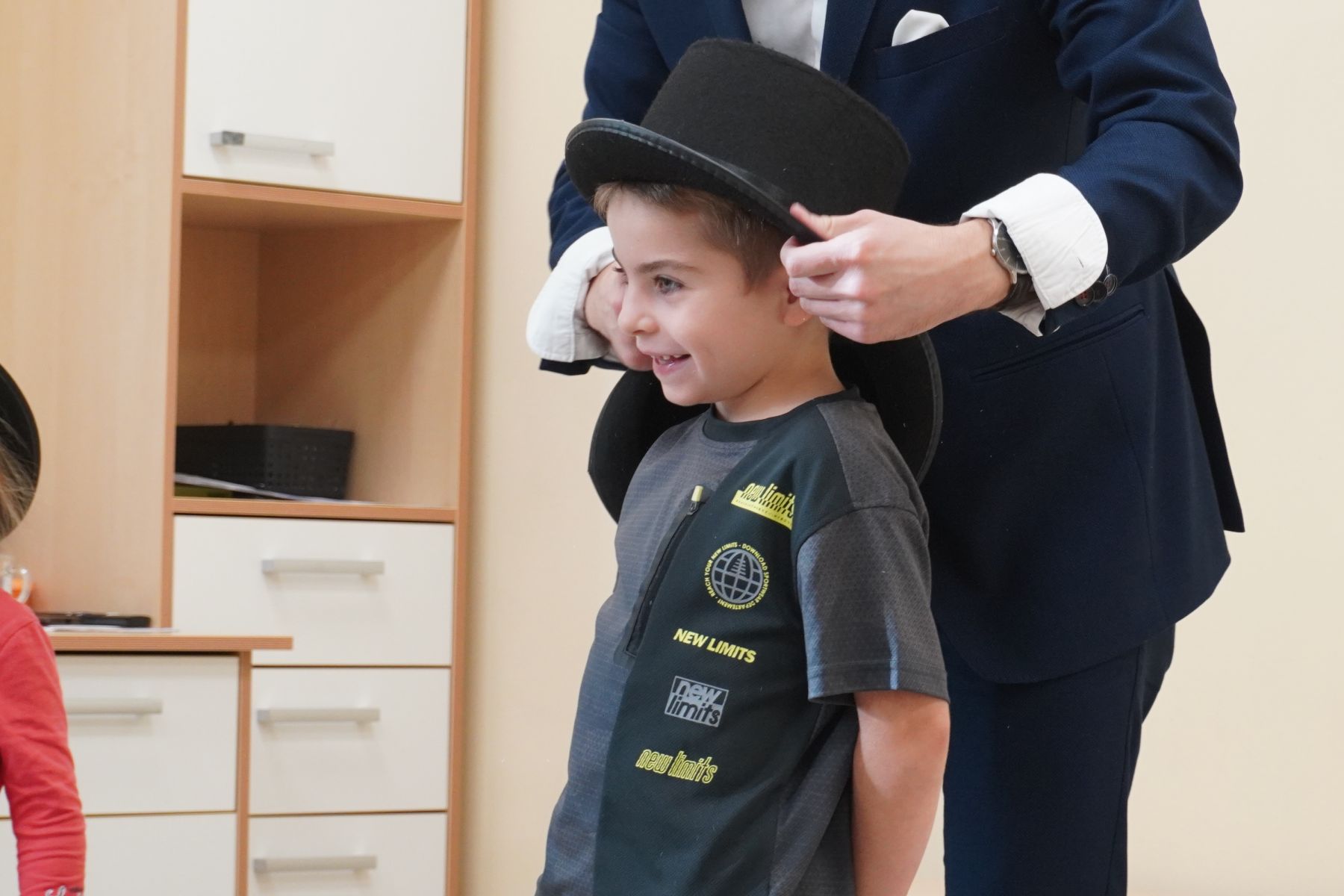 Dziś w naszym przedszkolu odbyło się niezwykłe wydarzenie pełne magii, śmiechu i radości. Gościem specjalnym był iluzjonista Maciej, który przeniósł dzieci w świat czarów i niespodzianek. Podczas występu przedszkolaki mogły zobaczyć niezwykłe sztuczki z piłeczkami, kolorowymi chustkami i magicznymi przedmiotami, które znikały i pojawiały się w najmniej oczekiwanych momentach.