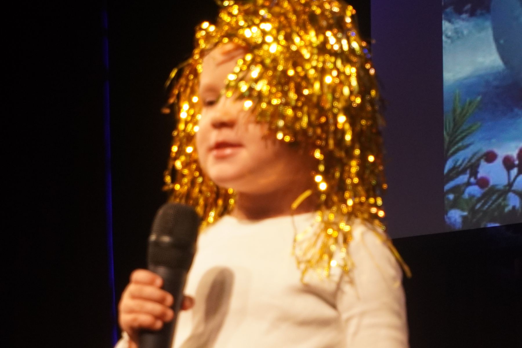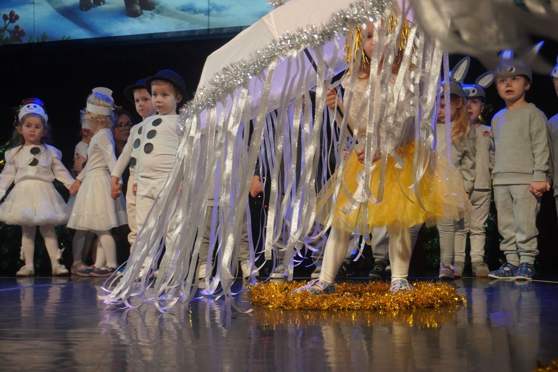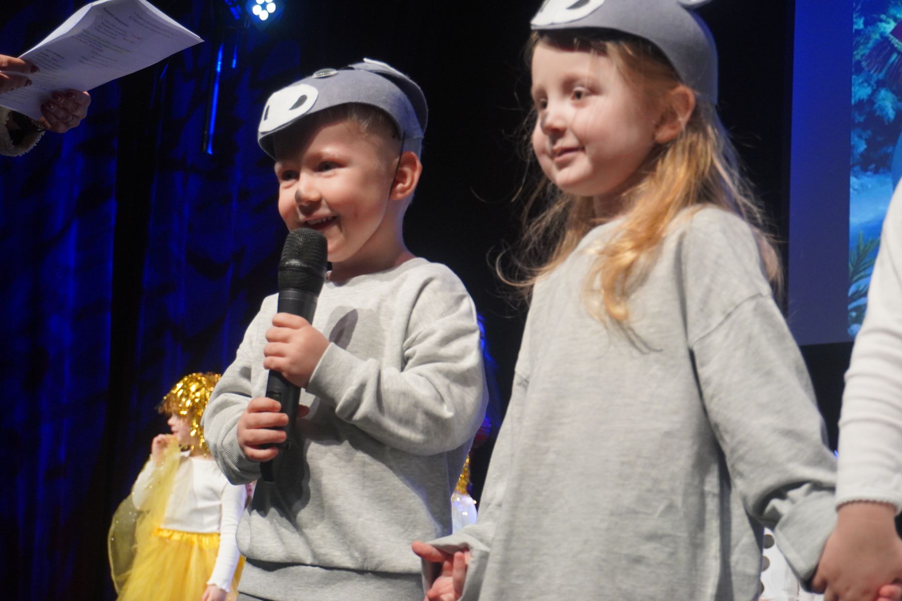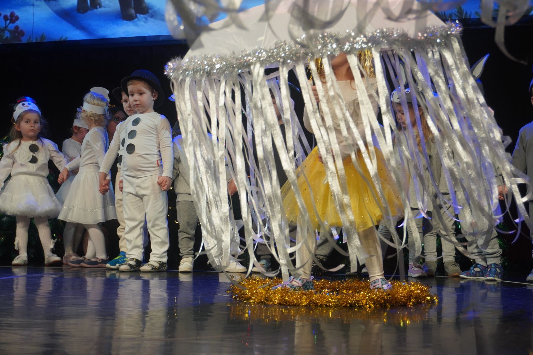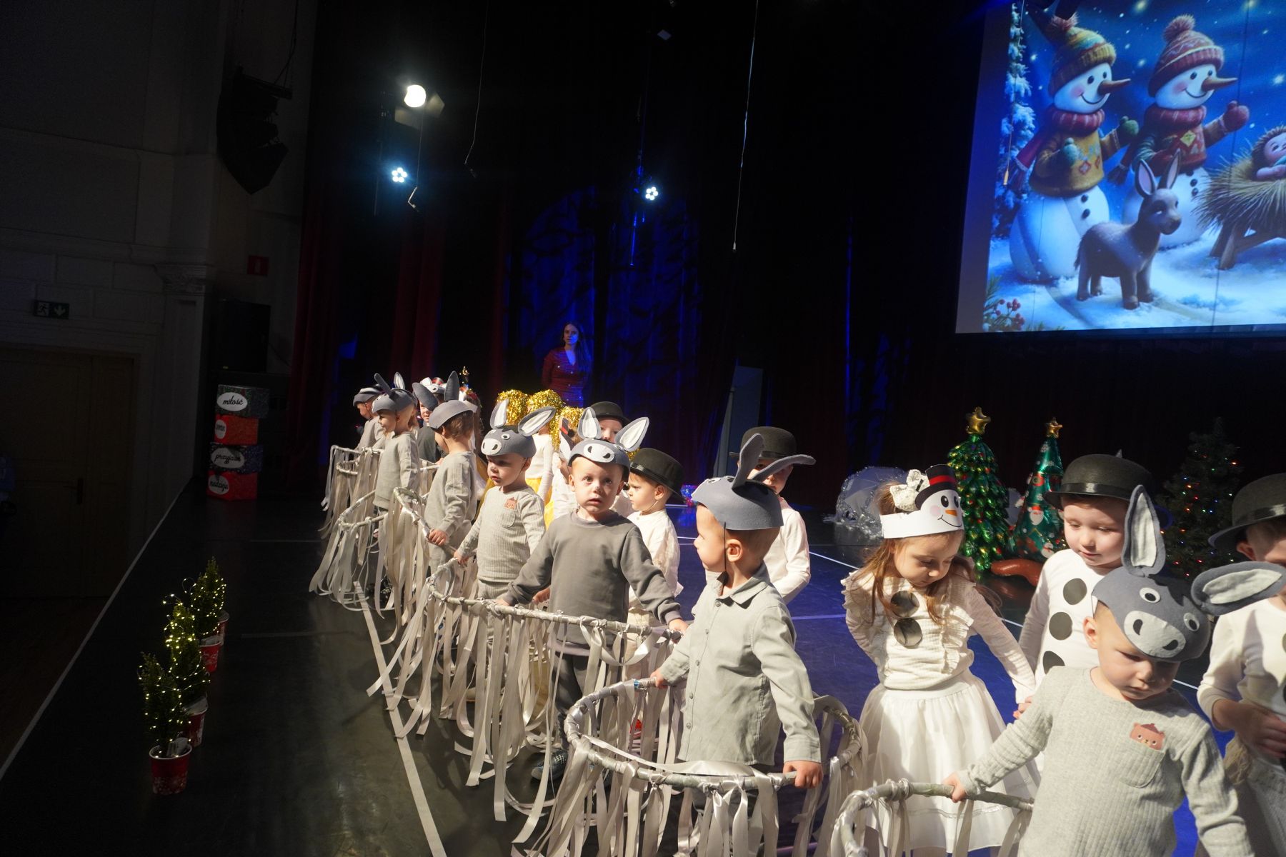 To moment, w którym dzieci i publiczność wspólnie tworzą atmosferę zbliżających się Świąt Bożego Narodzenia.