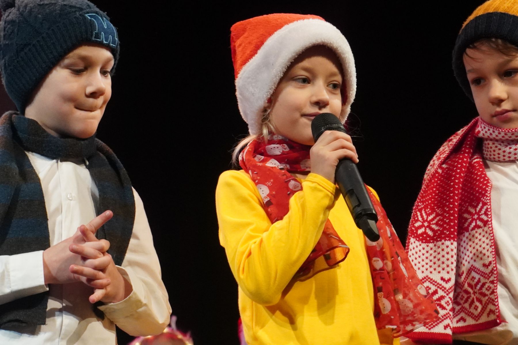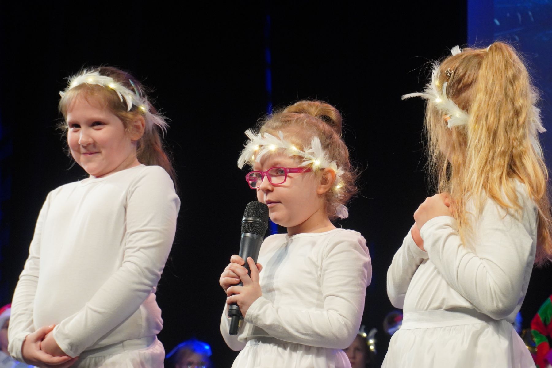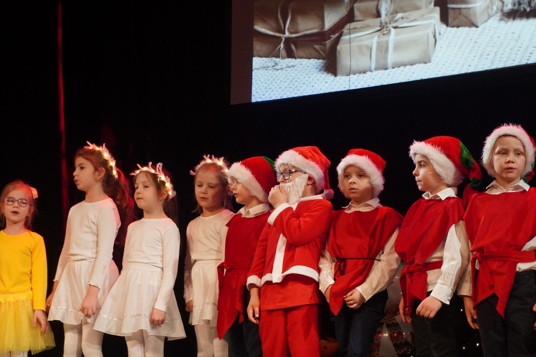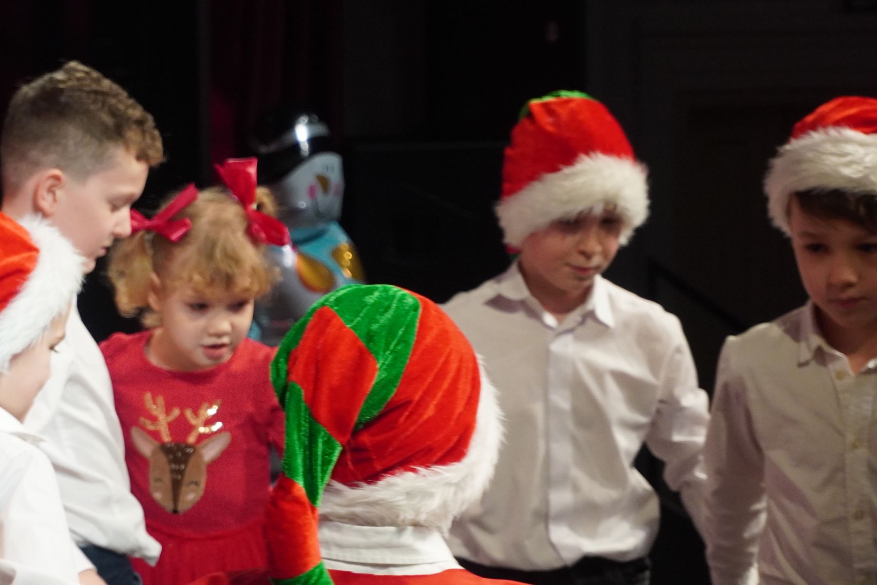 To moment, w którym dzieci i publiczność wspólnie tworzą atmosferę zbliżających się Świąt Bożego Narodzenia.