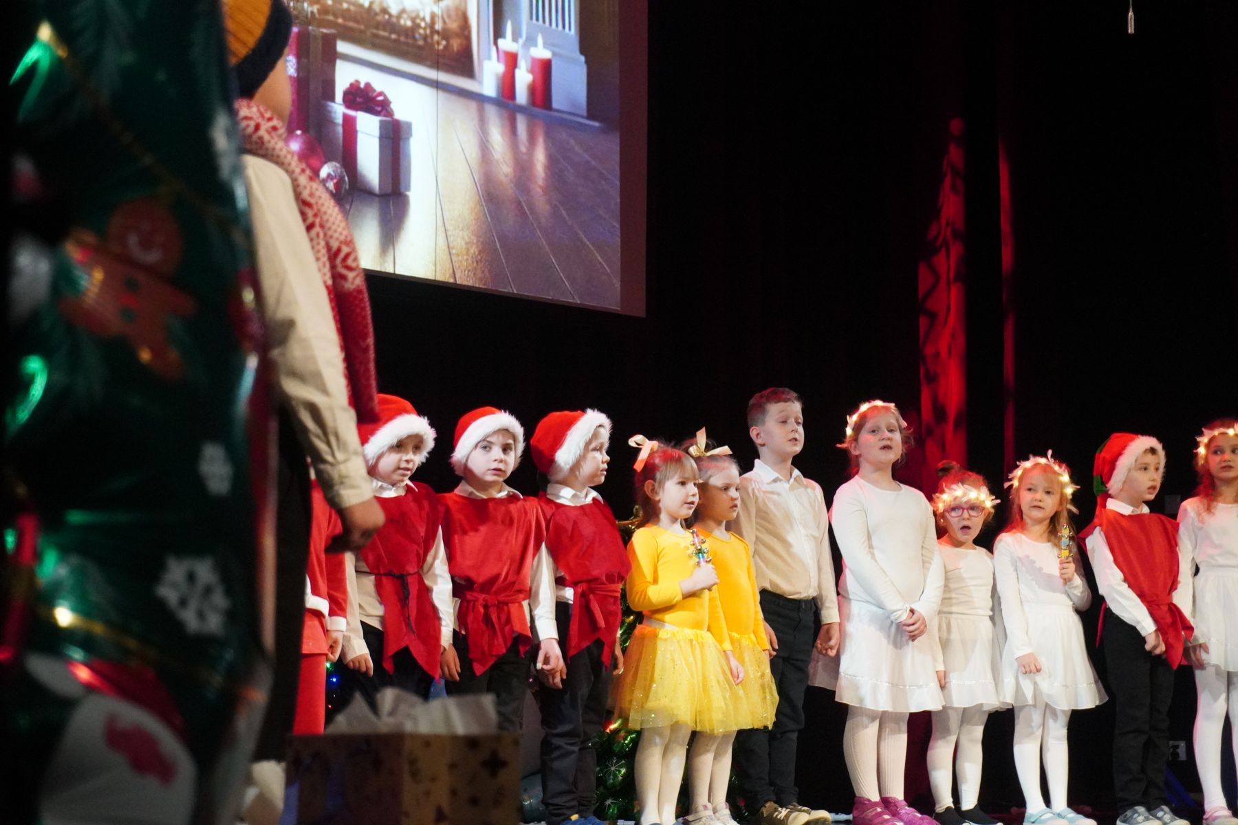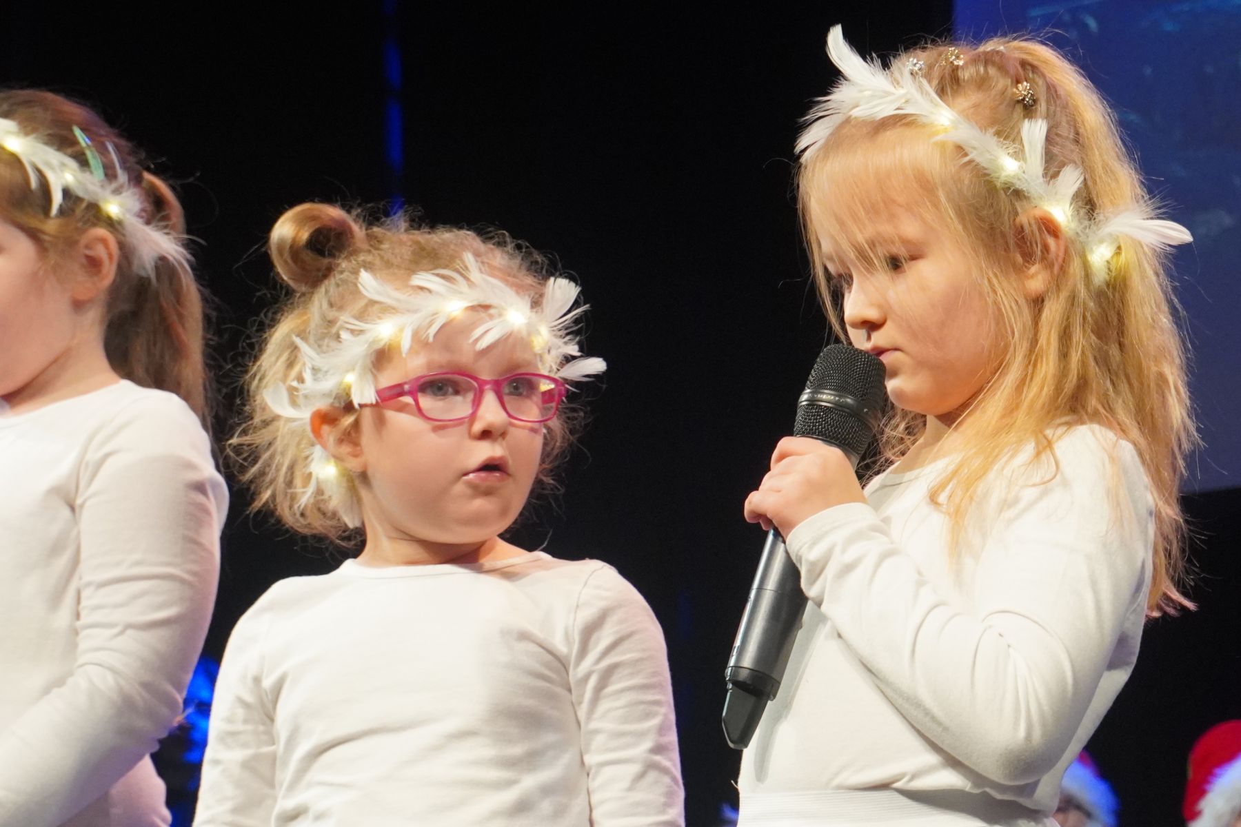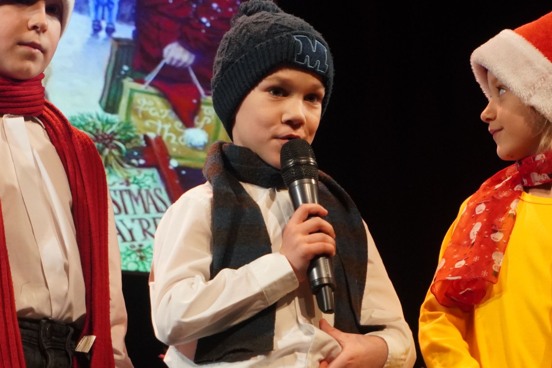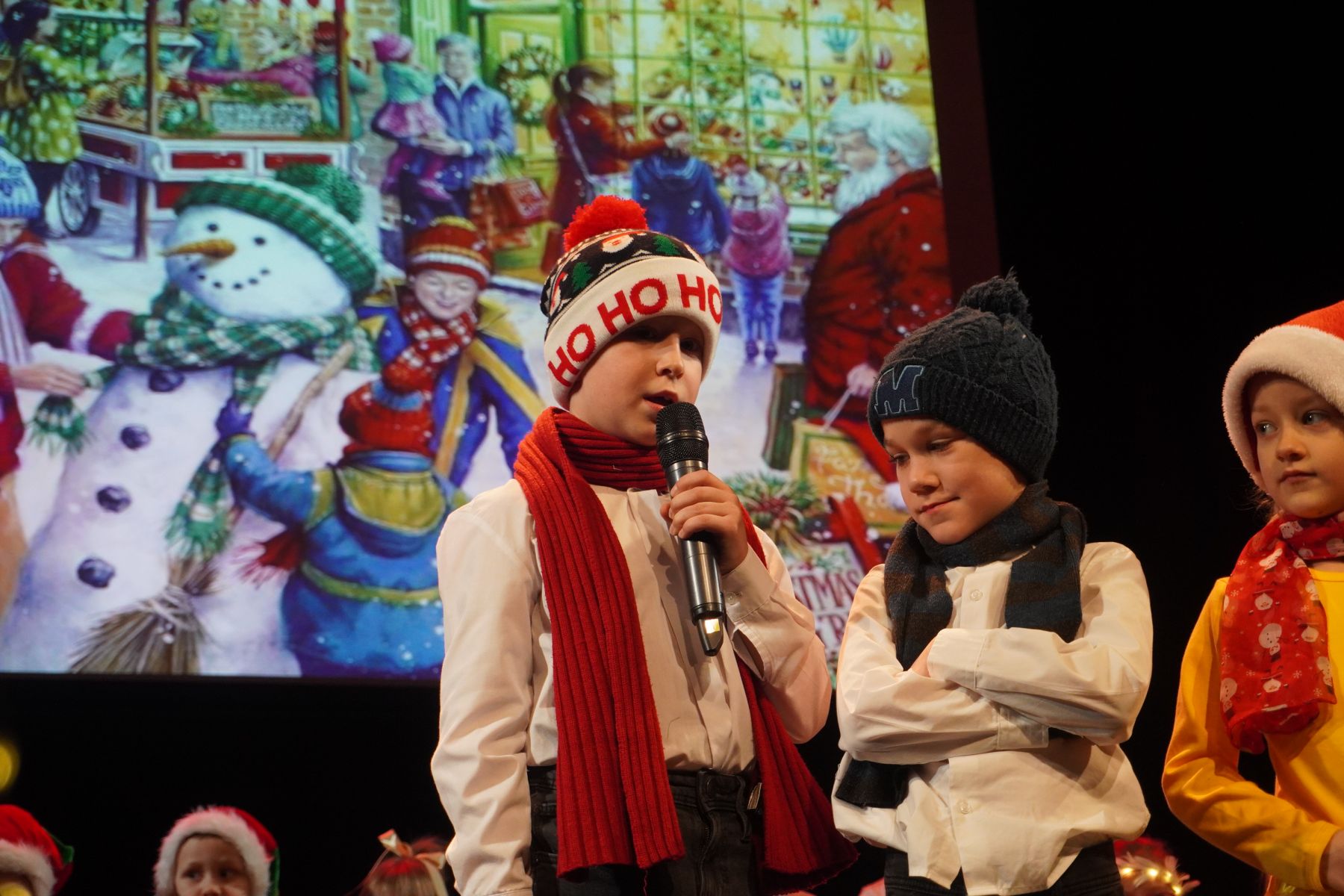 To moment, w którym dzieci i publiczność wspólnie tworzą atmosferę zbliżających się Świąt Bożego Narodzenia.
