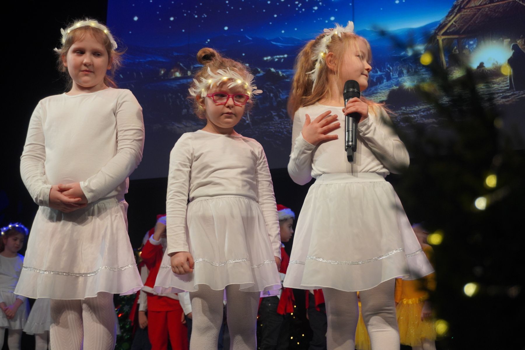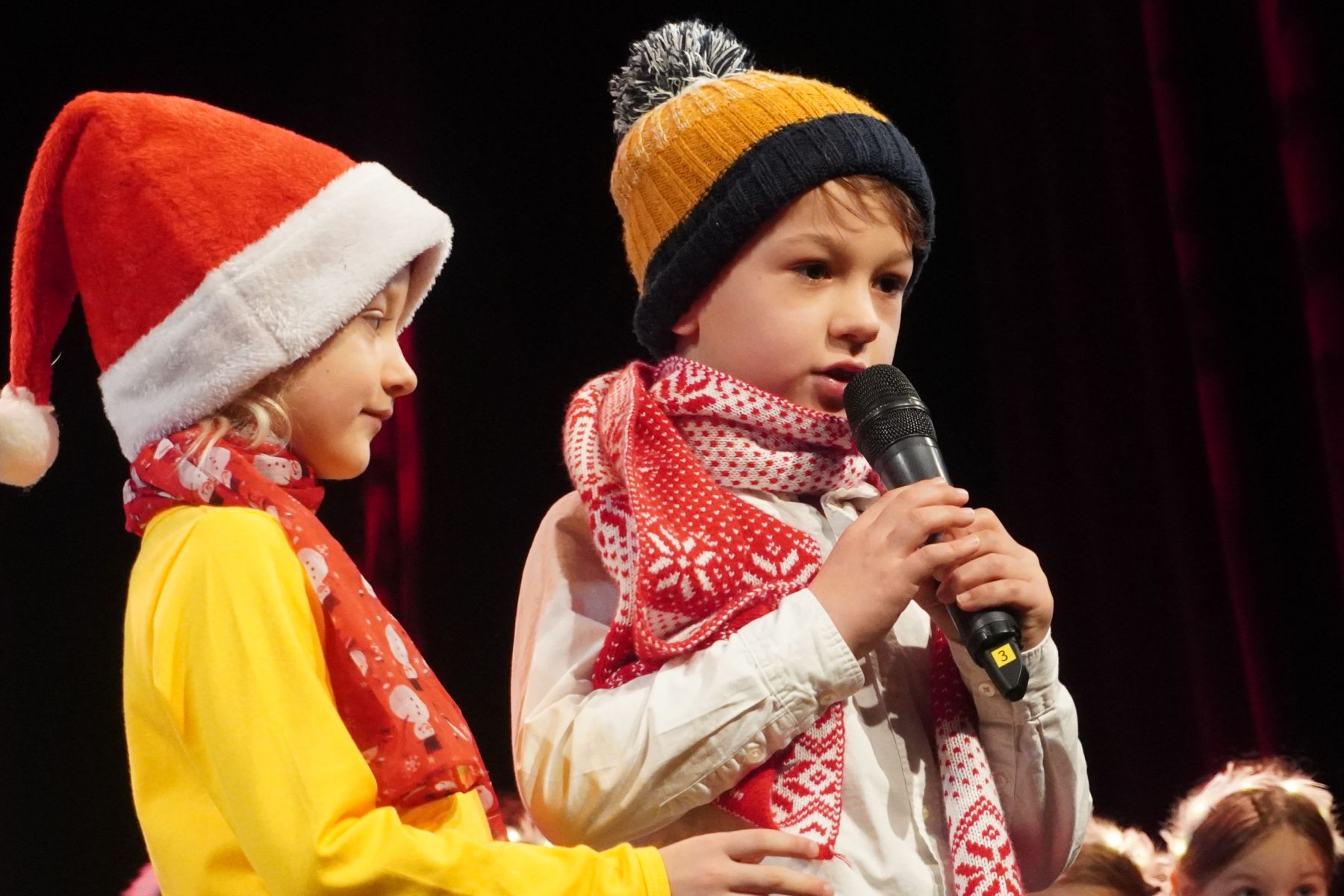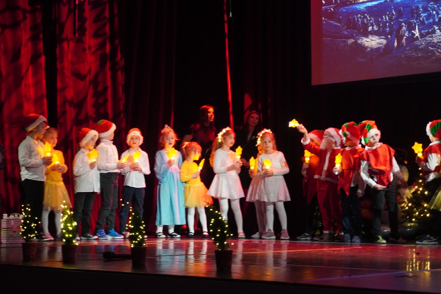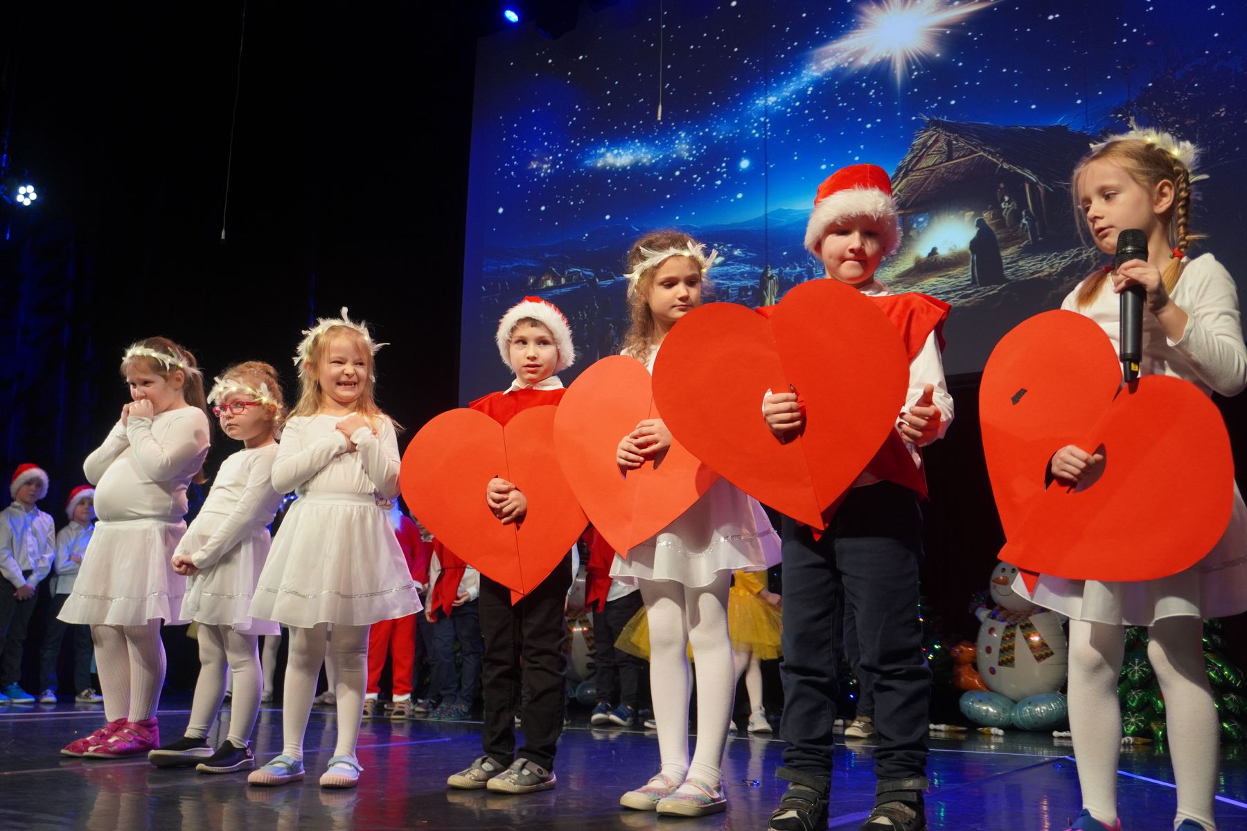 To moment, w którym dzieci i publiczność wspólnie tworzą atmosferę zbliżających się Świąt Bożego Narodzenia.