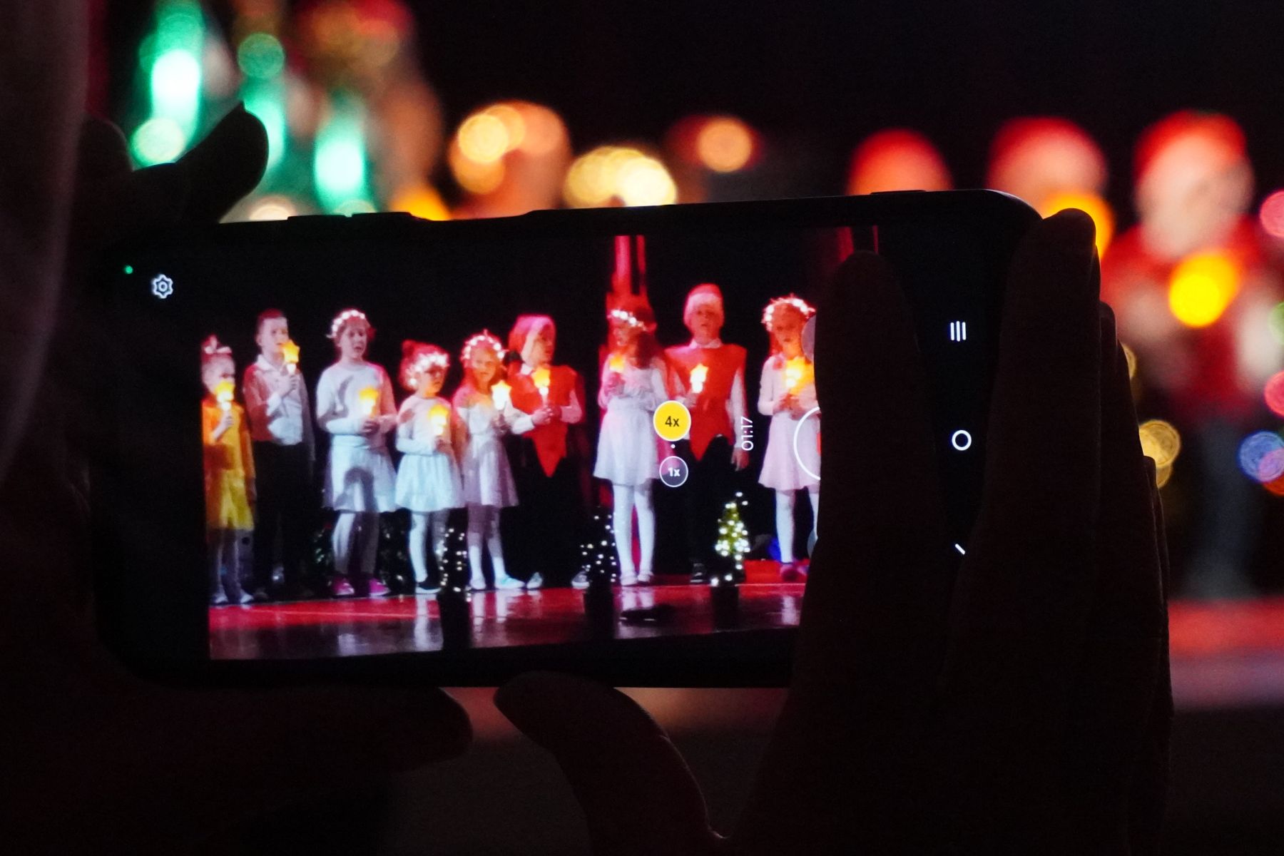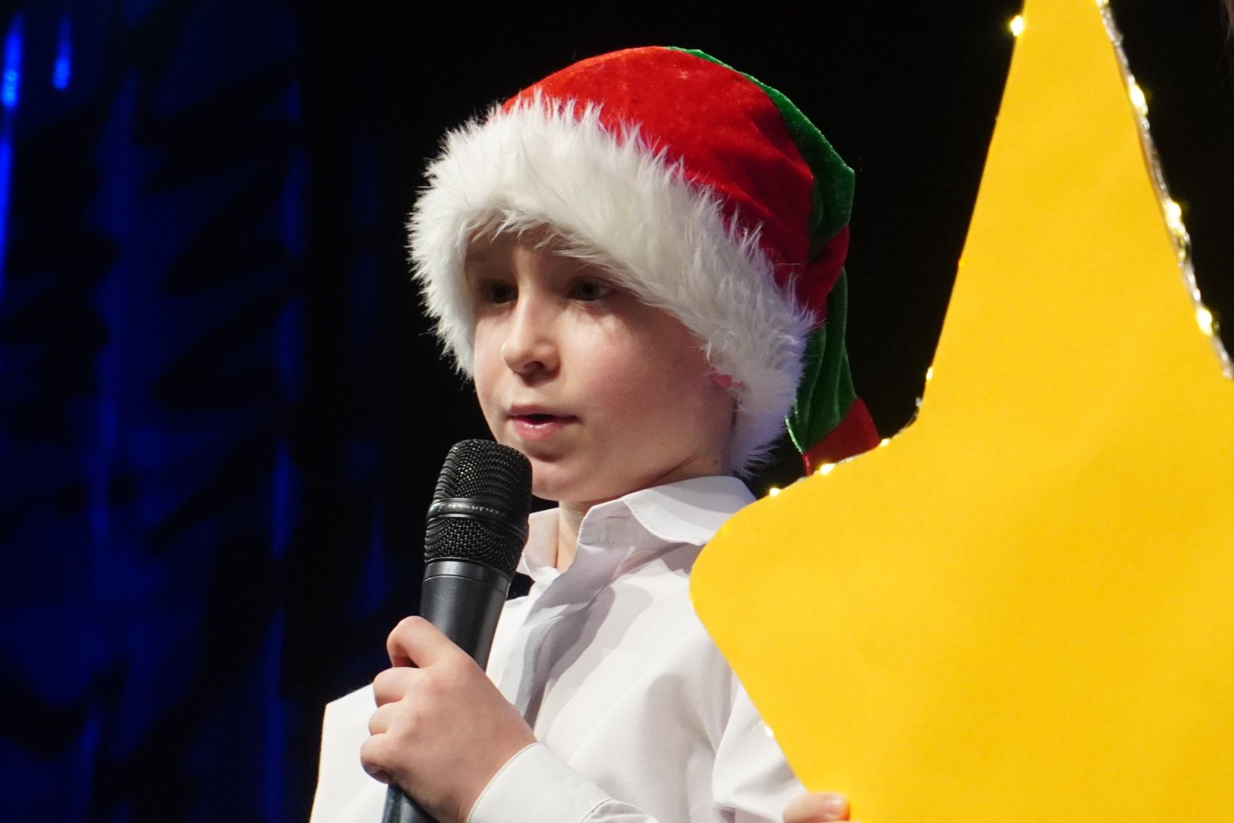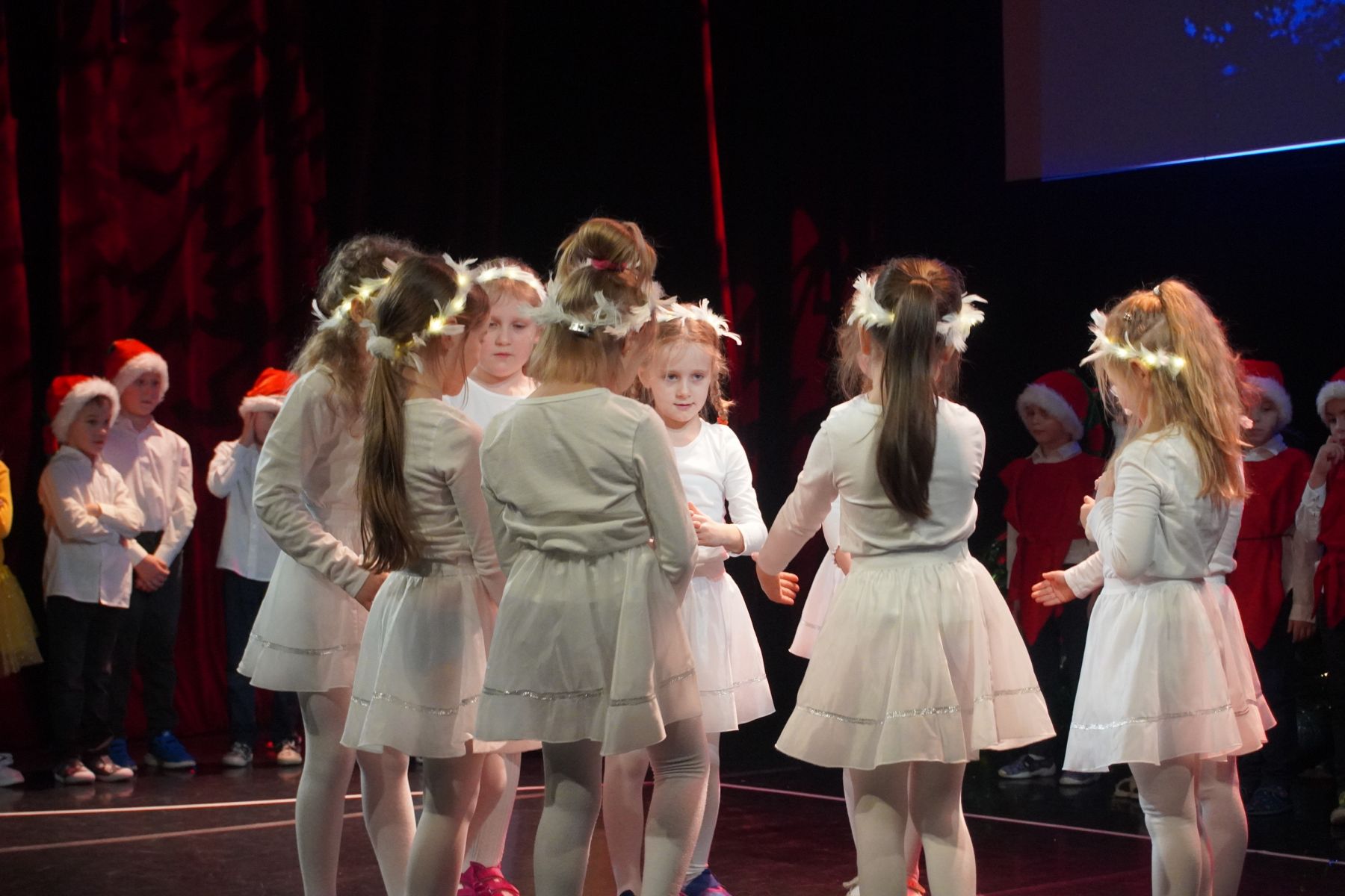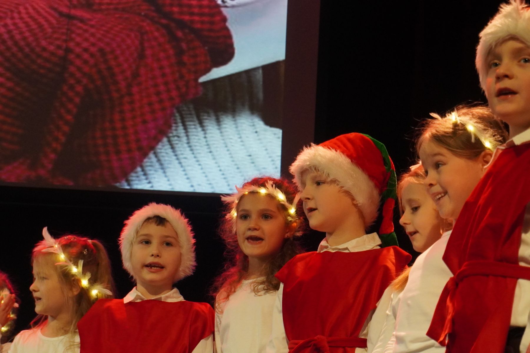 To moment, w którym dzieci i publiczność wspólnie tworzą atmosferę zbliżających się Świąt Bożego Narodzenia.