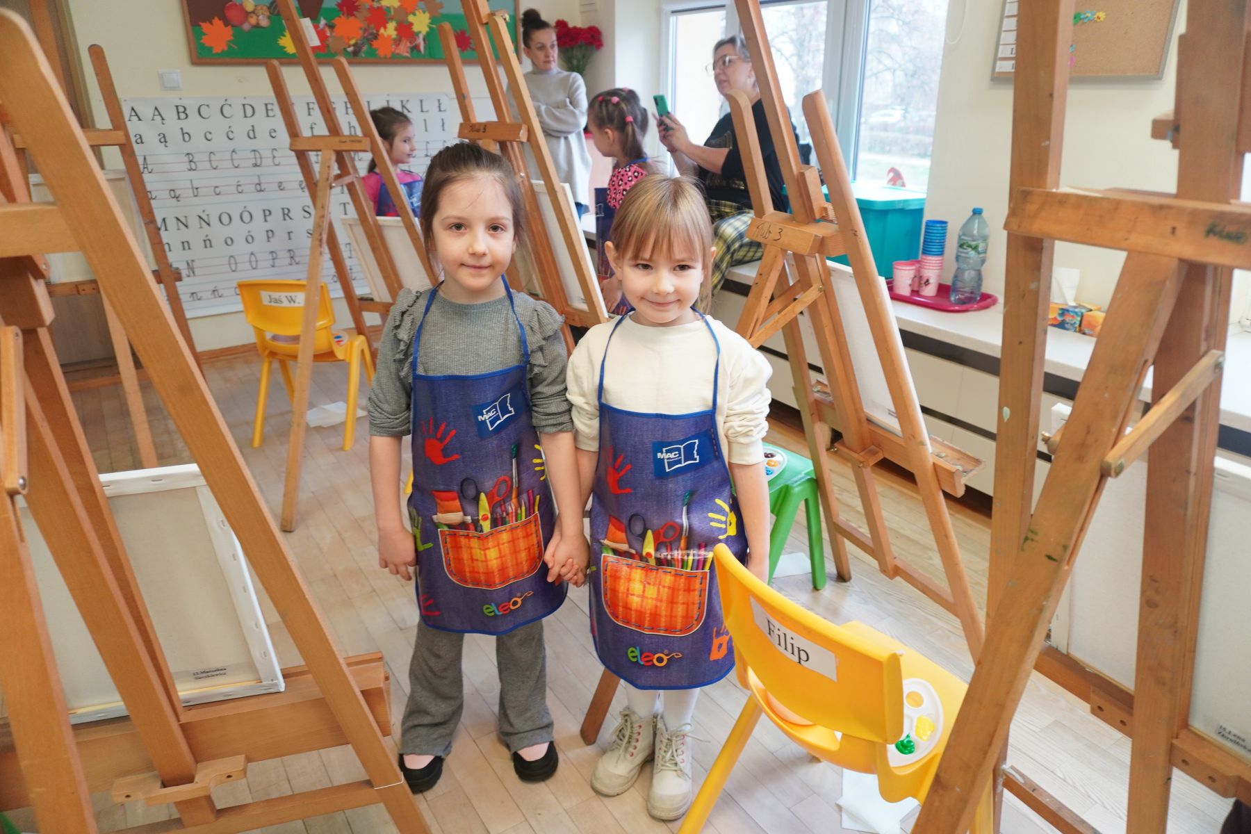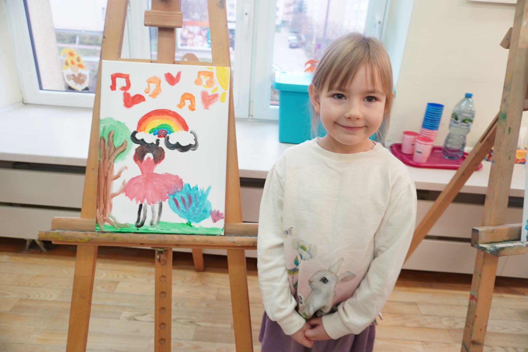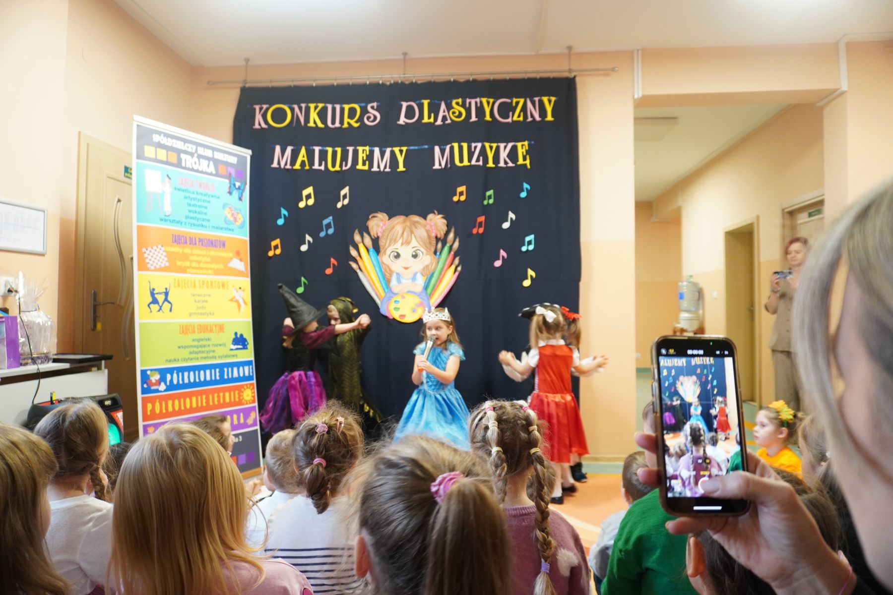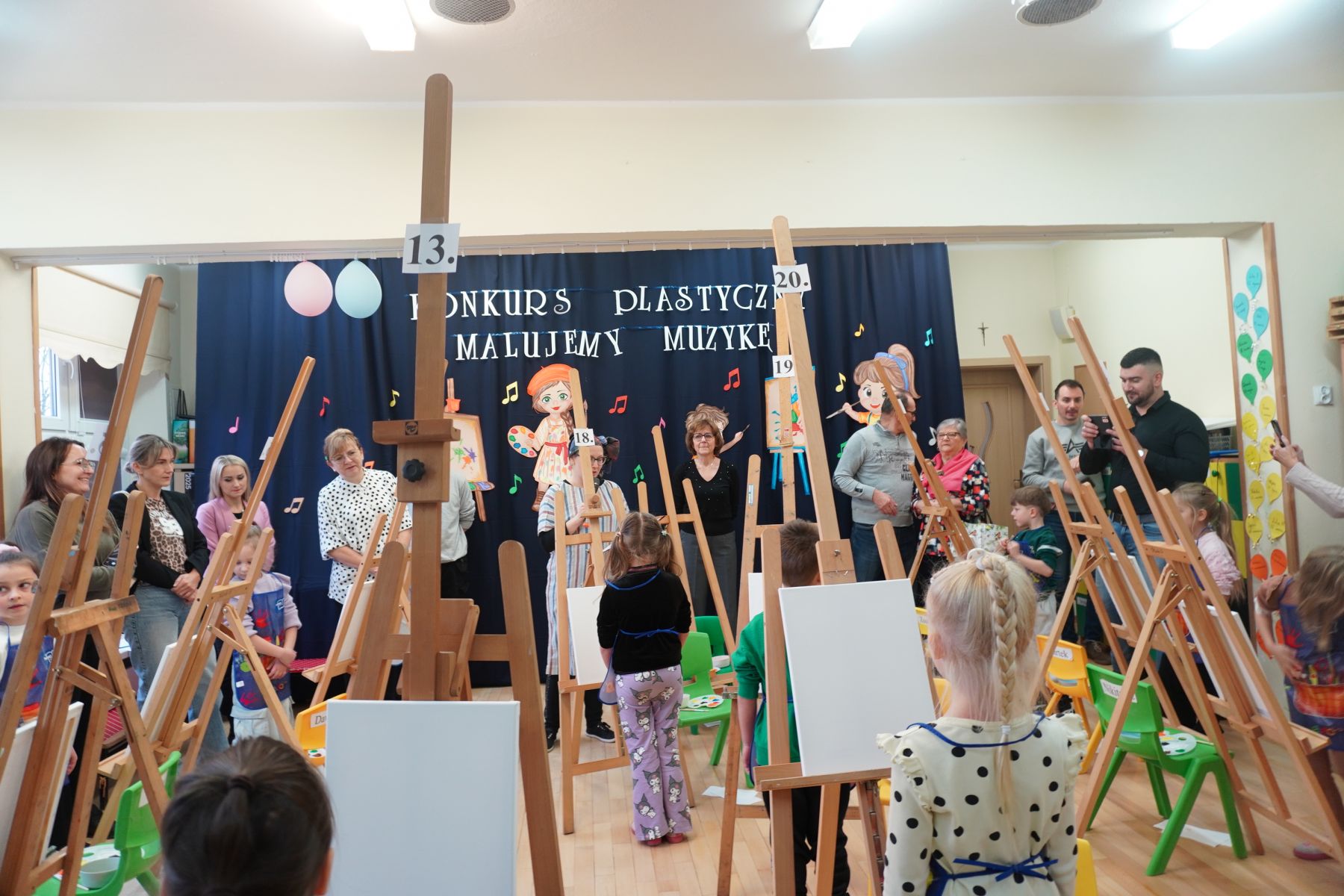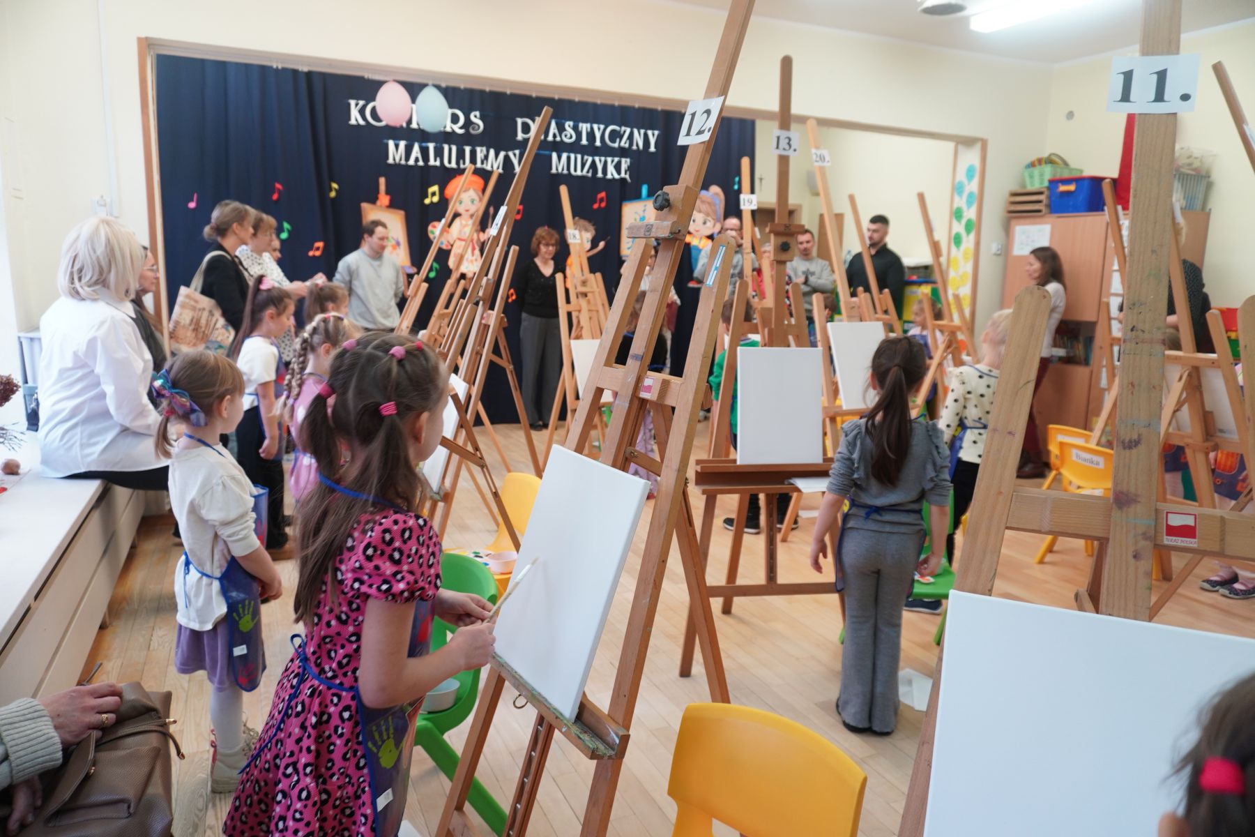 W konkursie plastycznym „Malujemy muzykę” wzięły udział nasze 6-latki - Marcelinka i Adelka, które z wielkim zaangażowaniem i wyobraźnią przeniosły dźwięki na sztalugę z płotnem. Podczas tworzenia prac panowała radosna atmosfera, pełna kreatywności i dobrej zabawy.