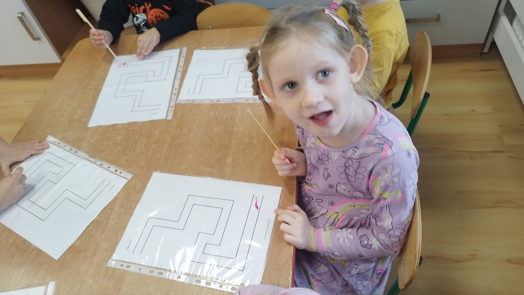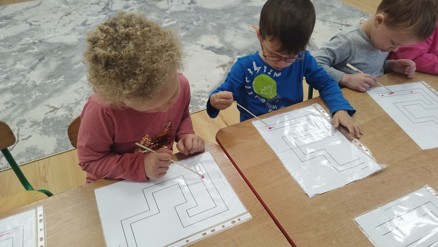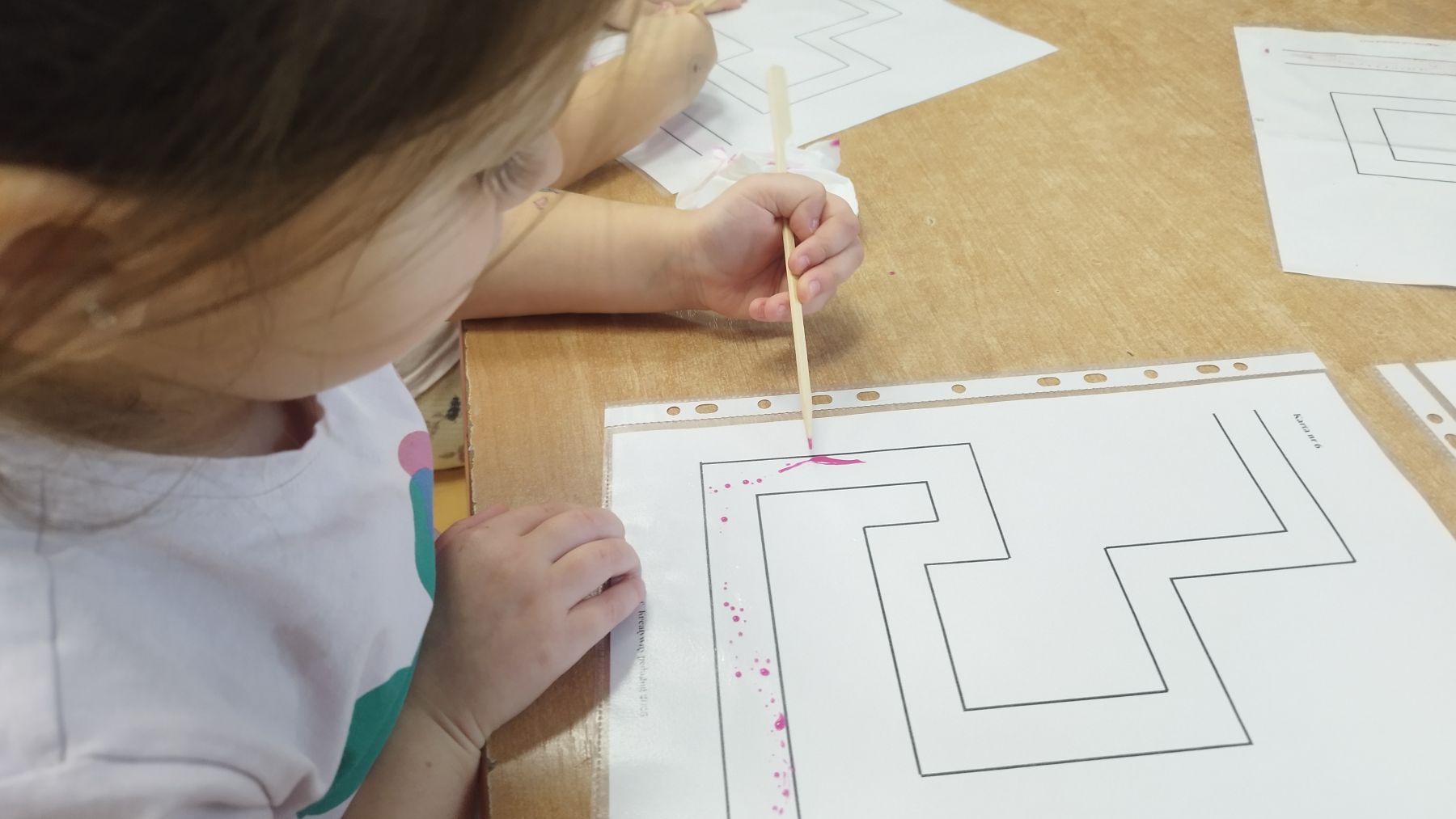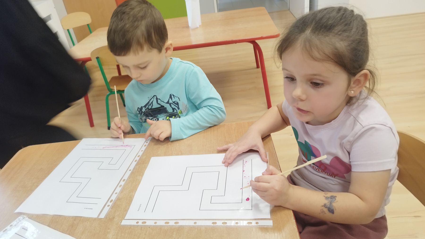 Zadaniem dzieci było przeprowadzenie kropli wody przez tunel za pomocą wykałaczki.