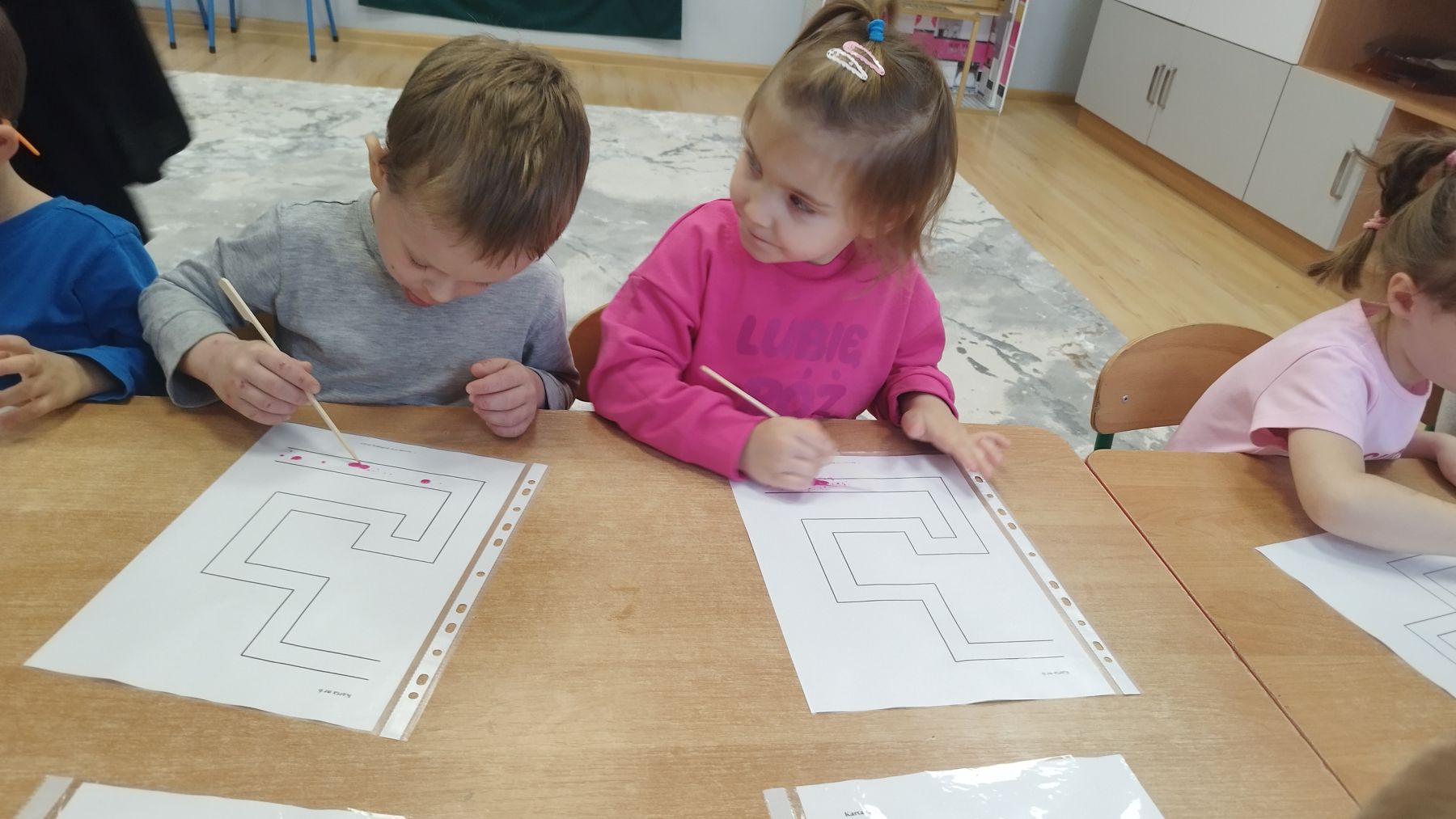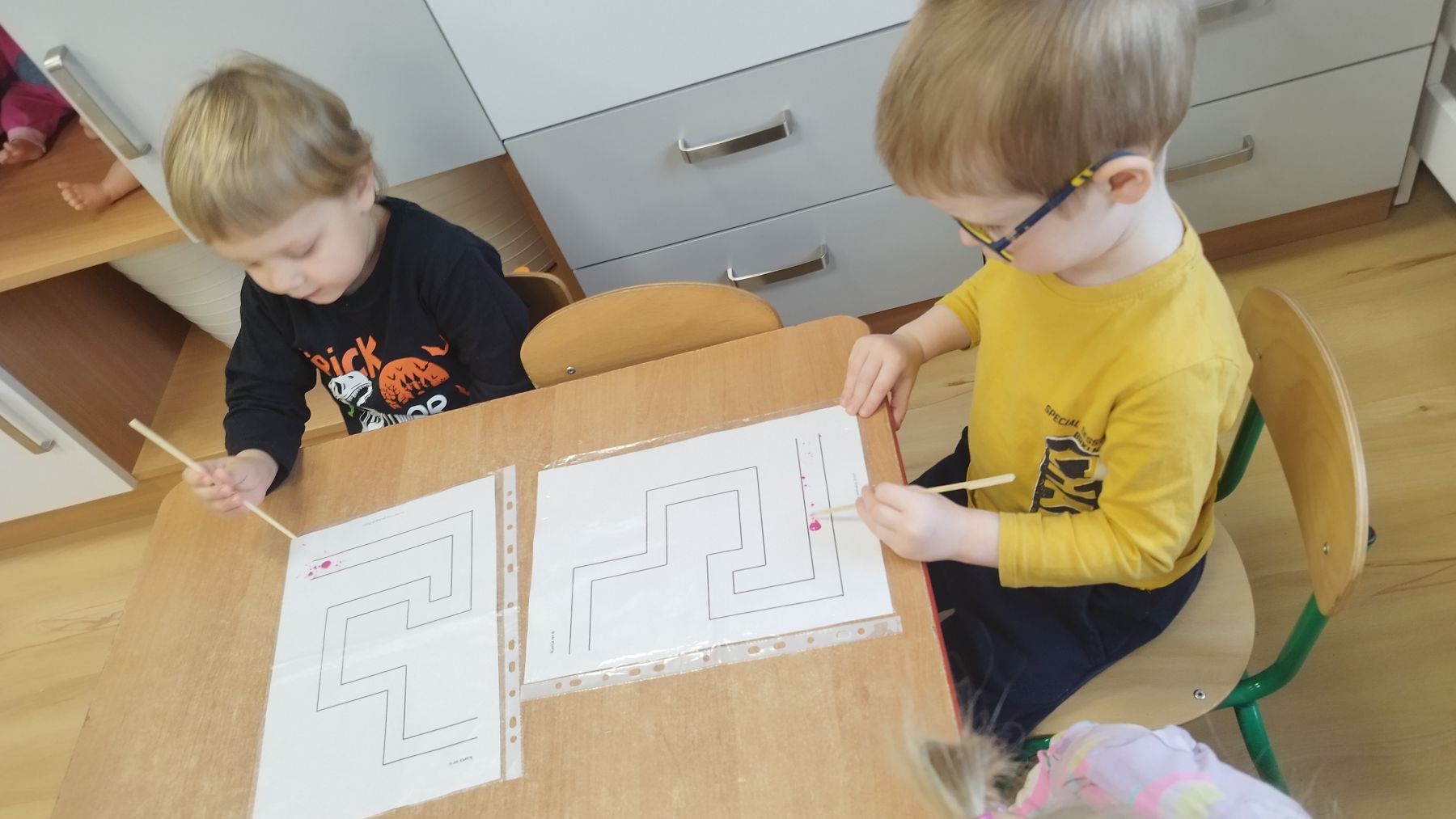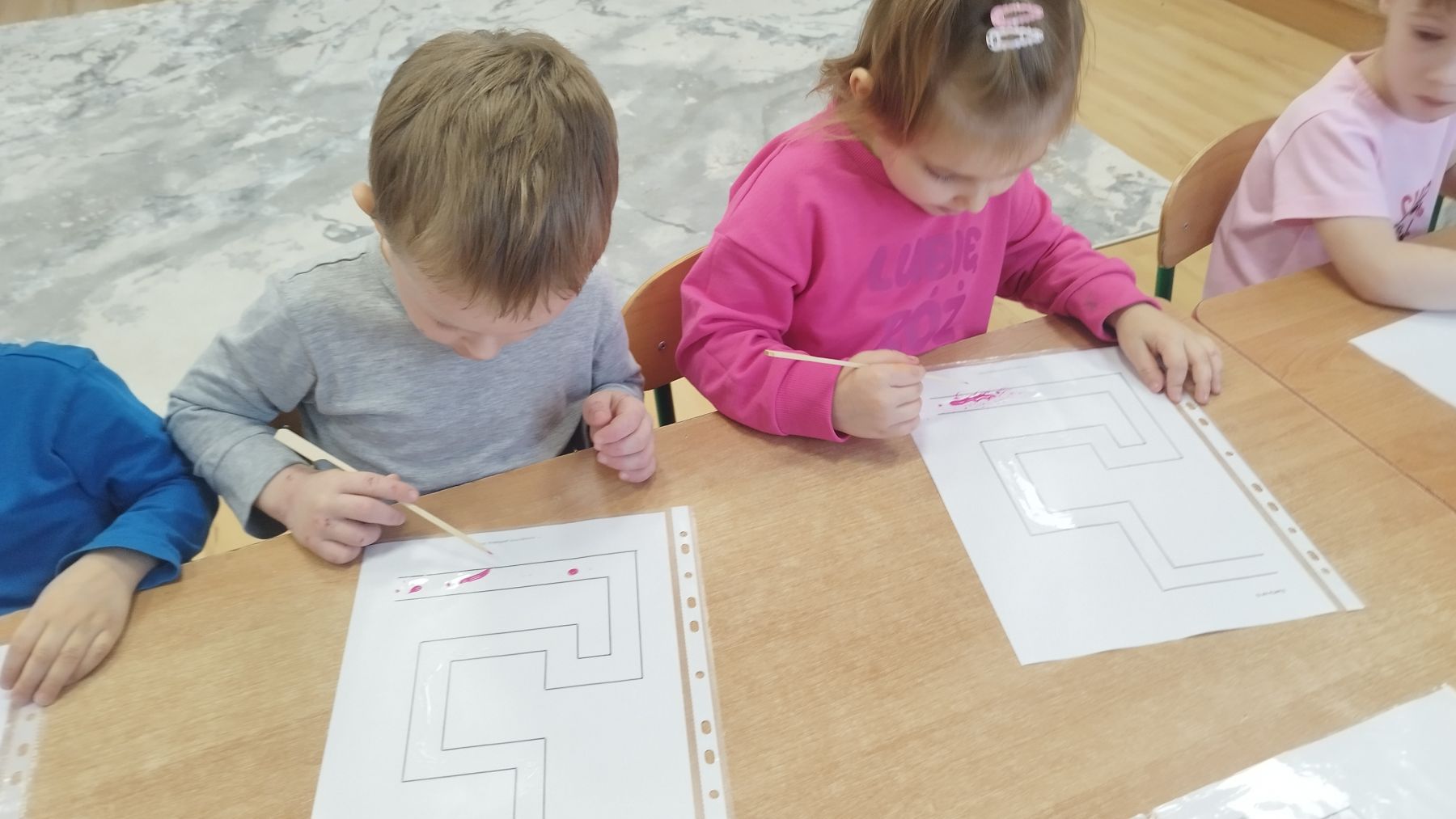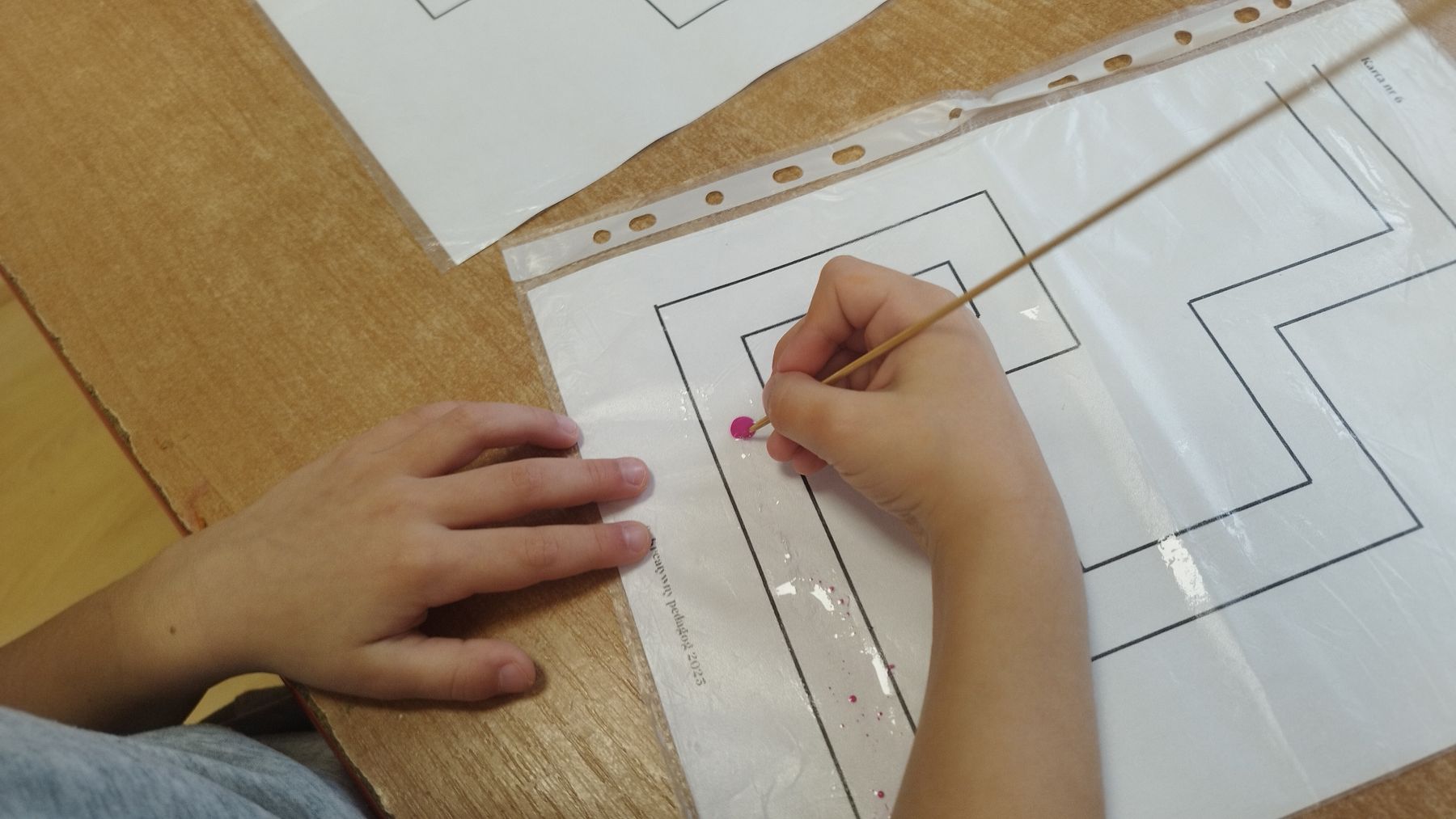 Zadaniem dzieci było przeprowadzenie kropli wody przez tunel za pomocą wykałaczki.