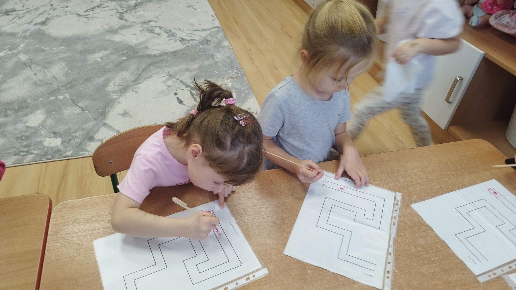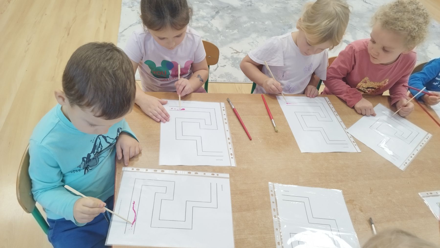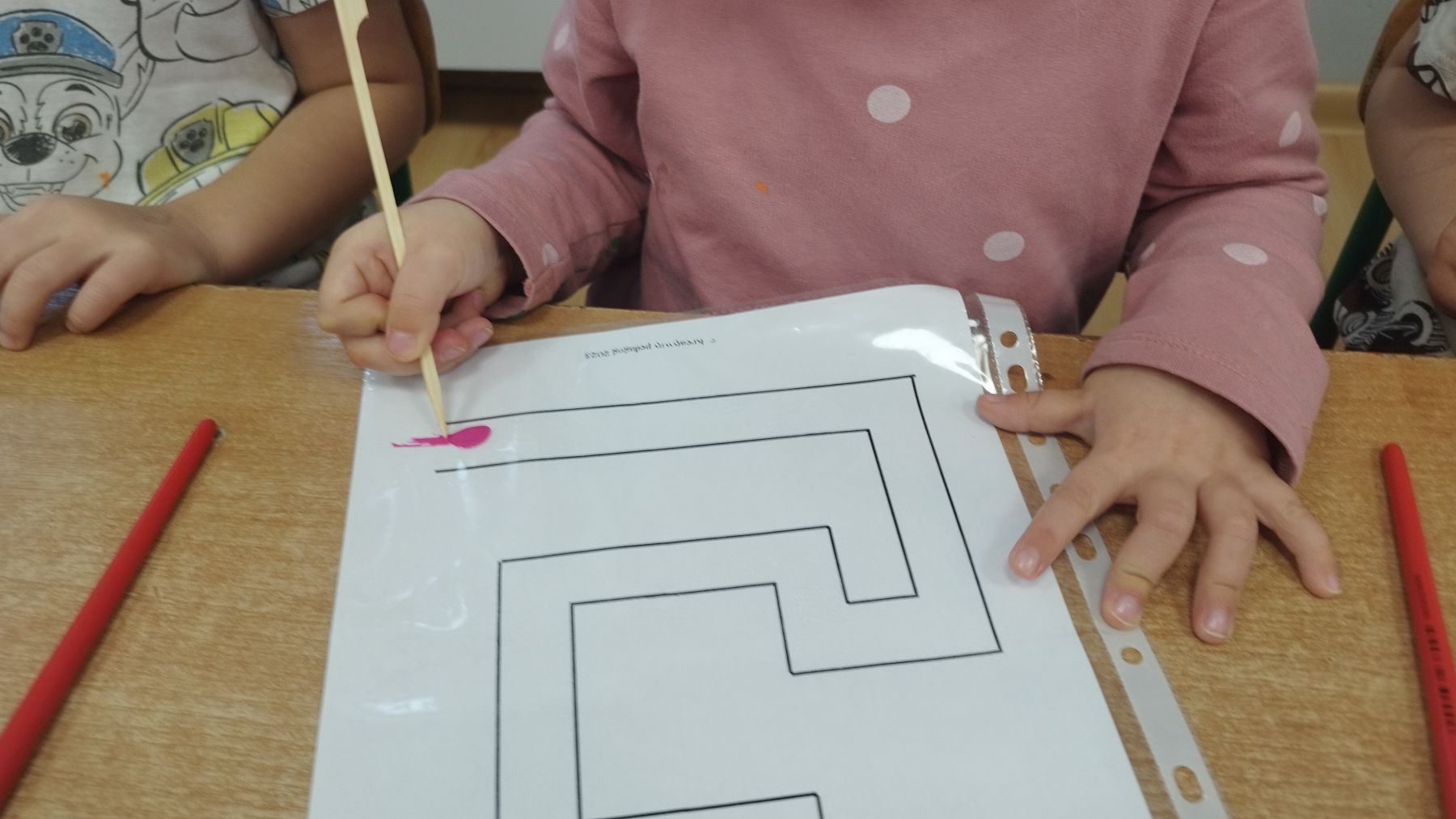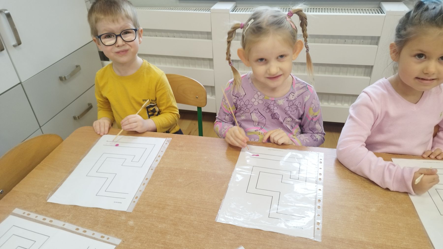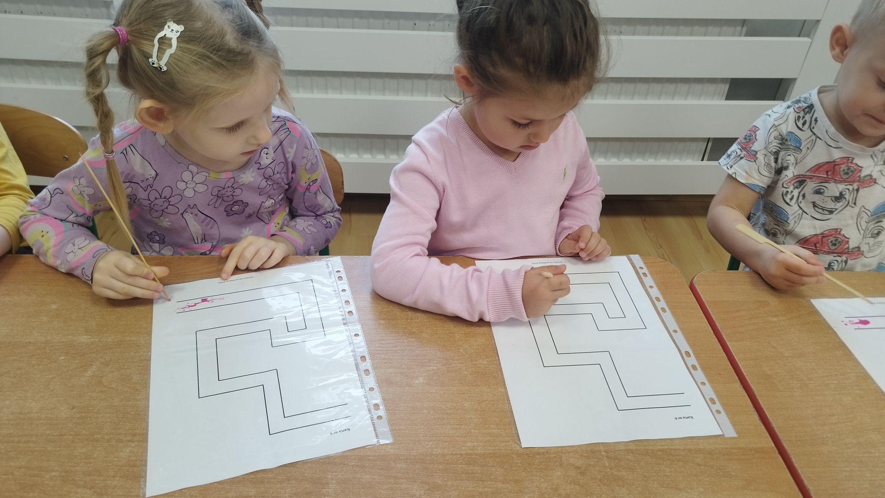 Zadaniem dzieci było przeprowadzenie kropli wody przez tunel za pomocą wykałaczki.