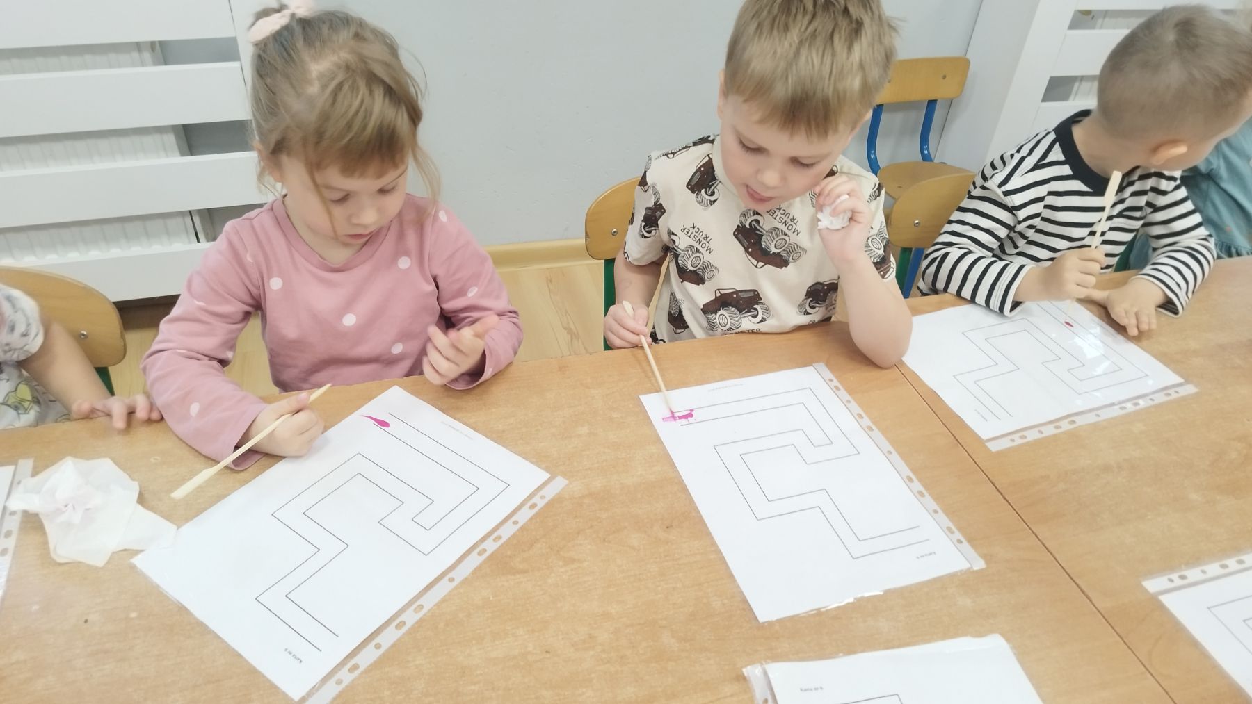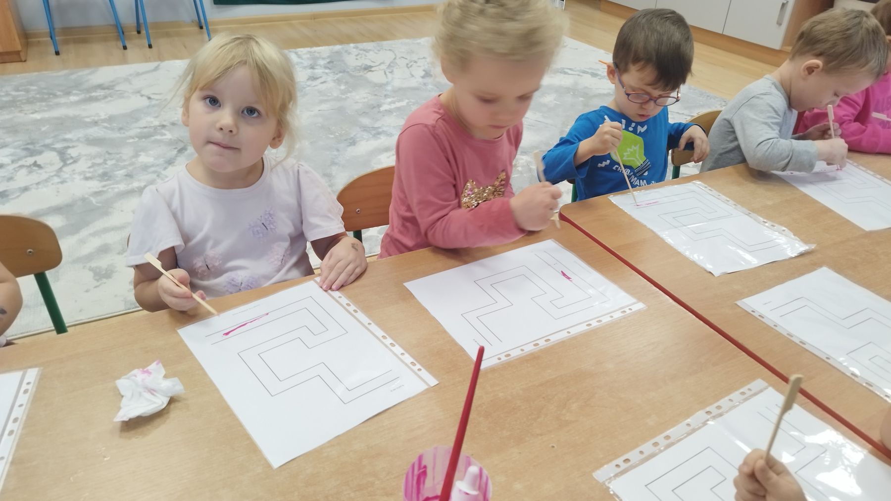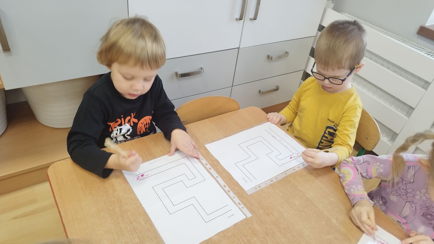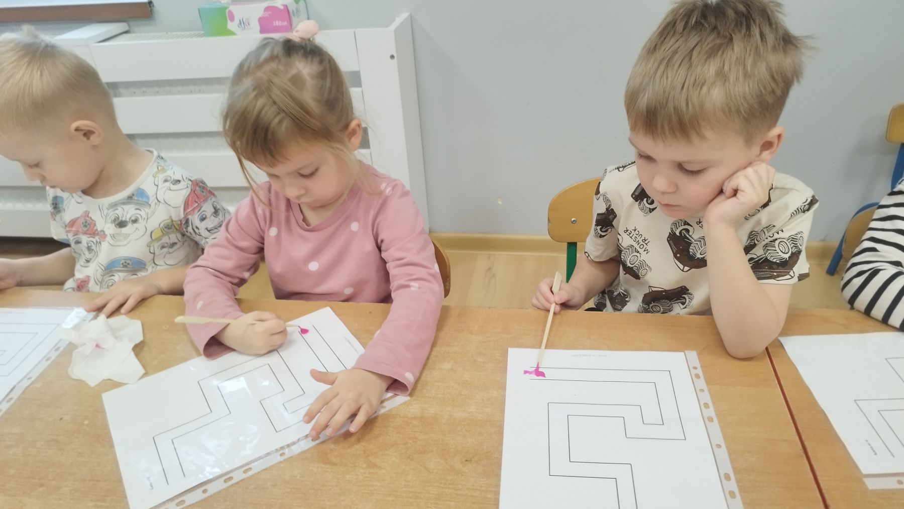 Zadaniem dzieci było przeprowadzenie kropli wody przez tunel za pomocą wykałaczki.