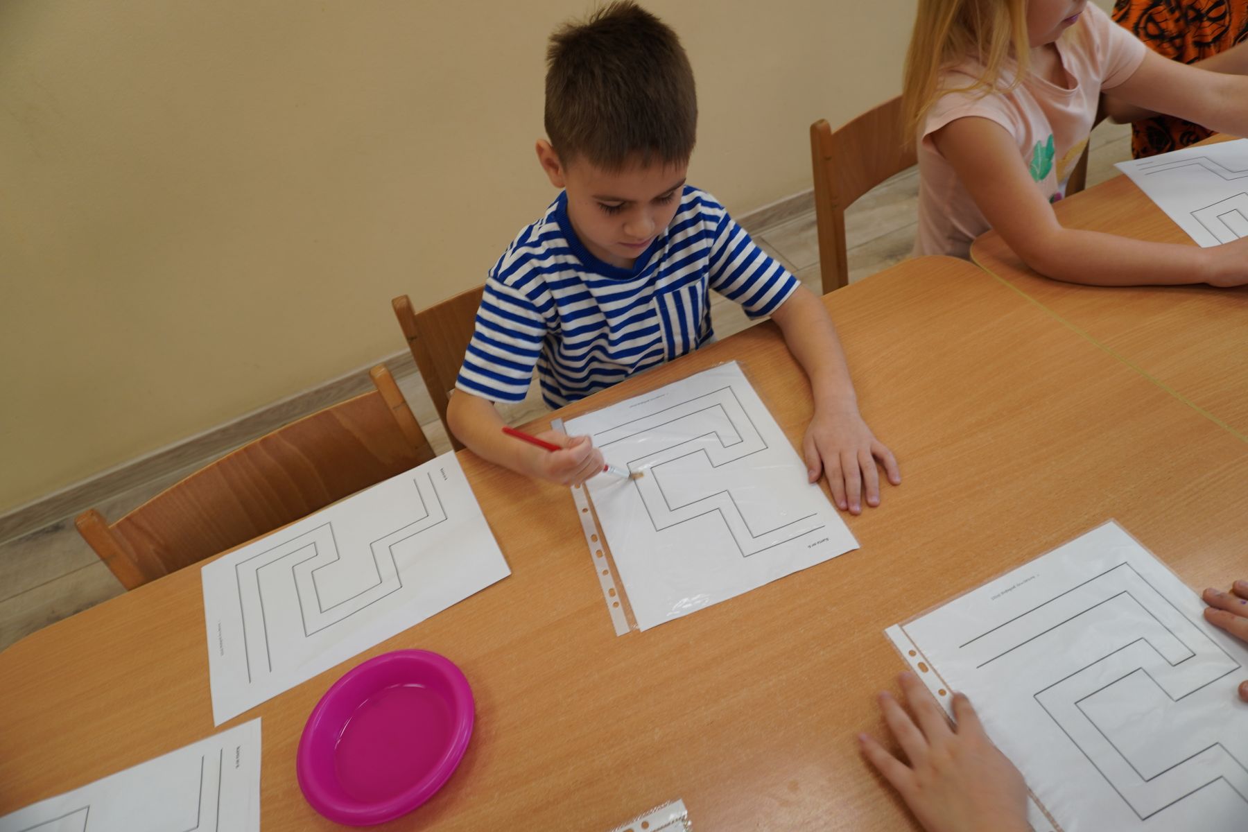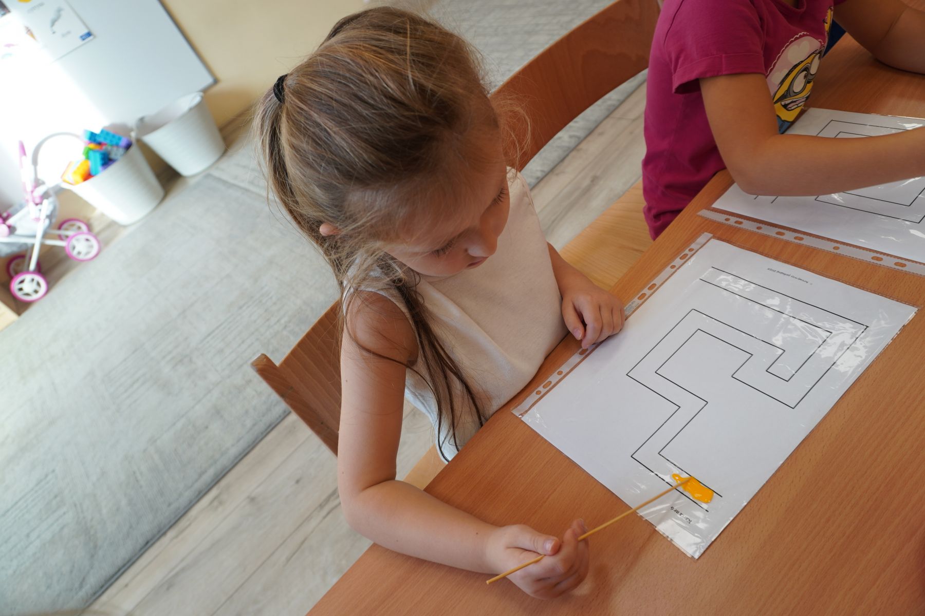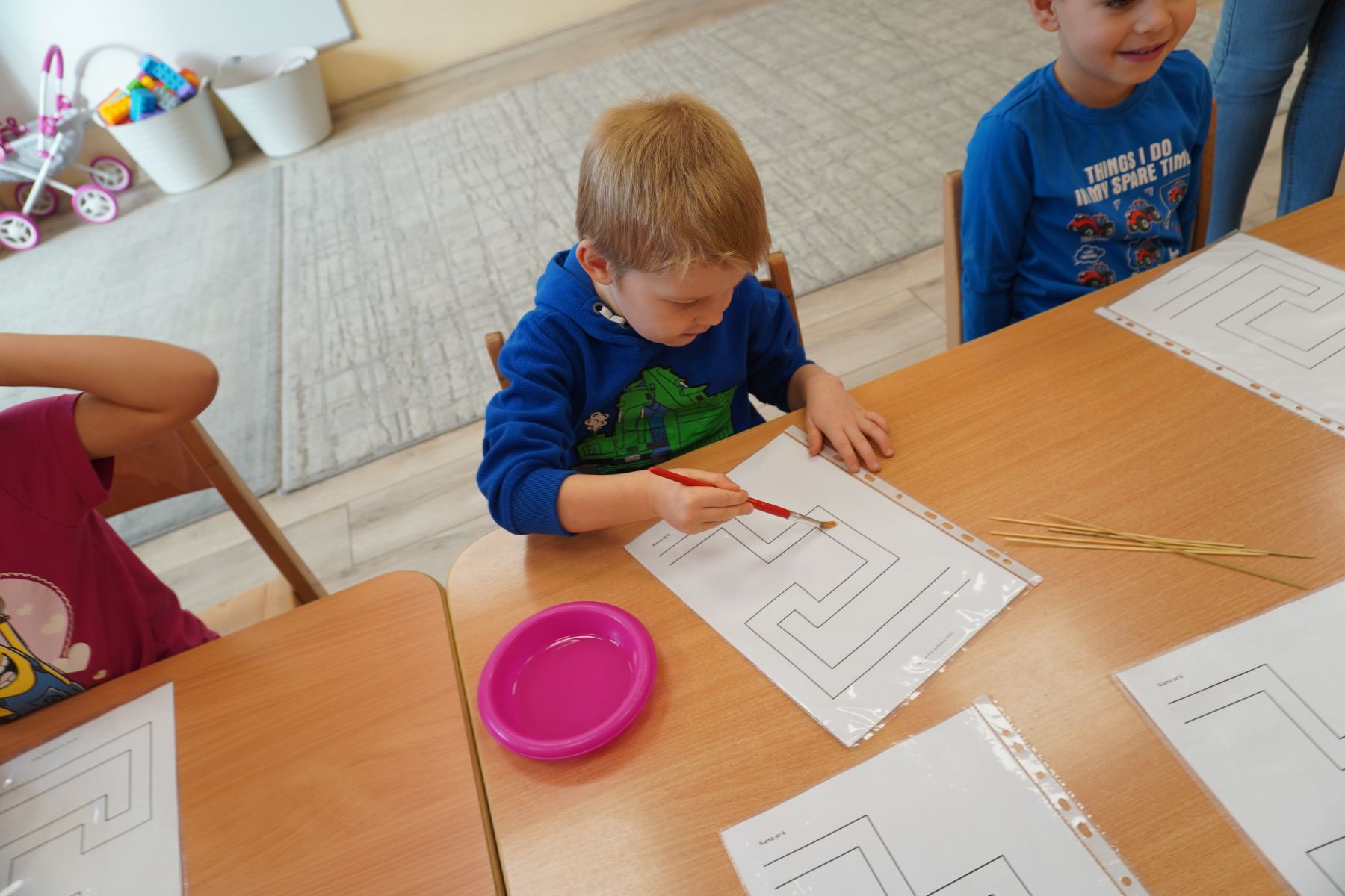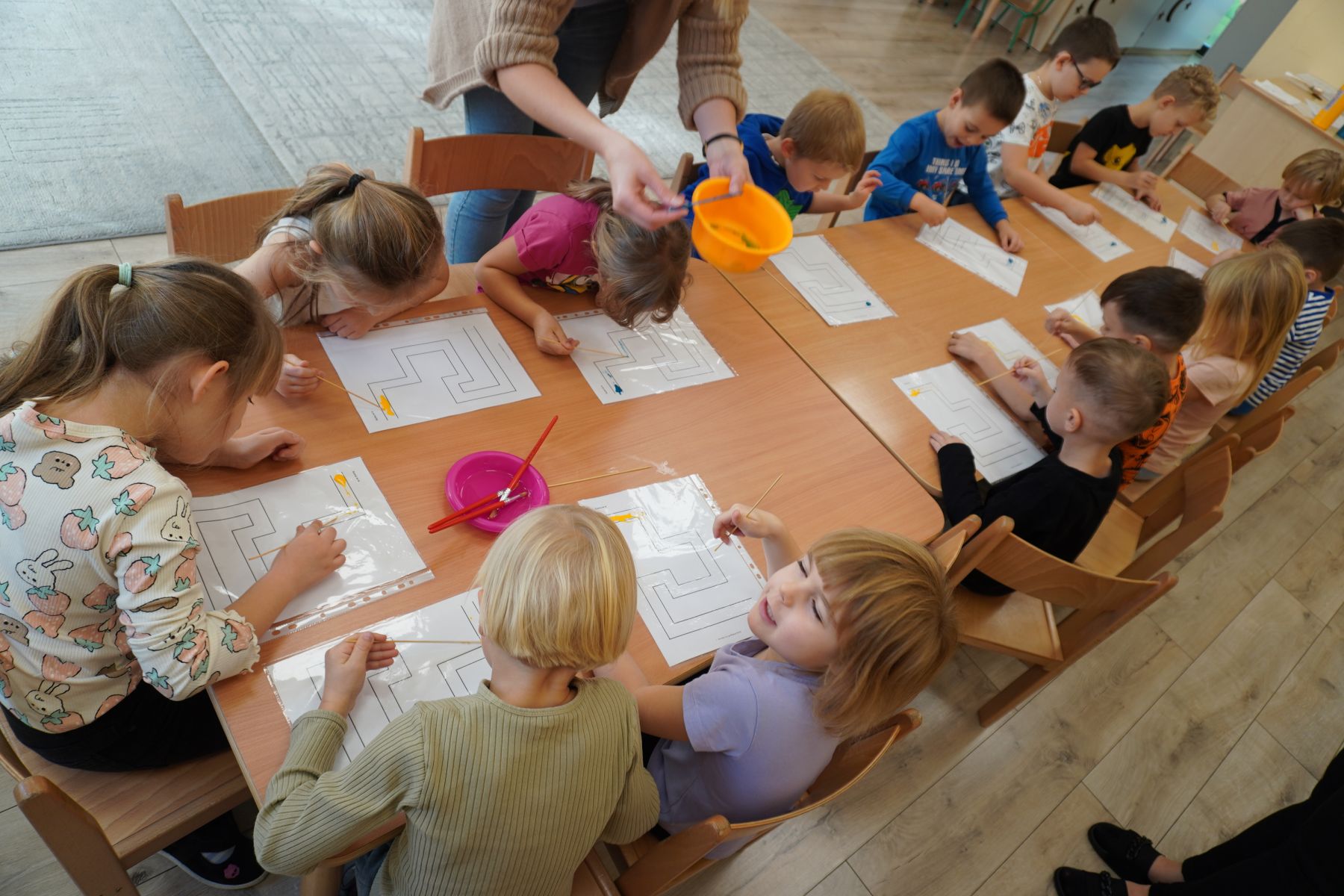 Zadaniem dzieci było przeprowadzenie kropli wody przez tunel za pomocą wykałaczki.