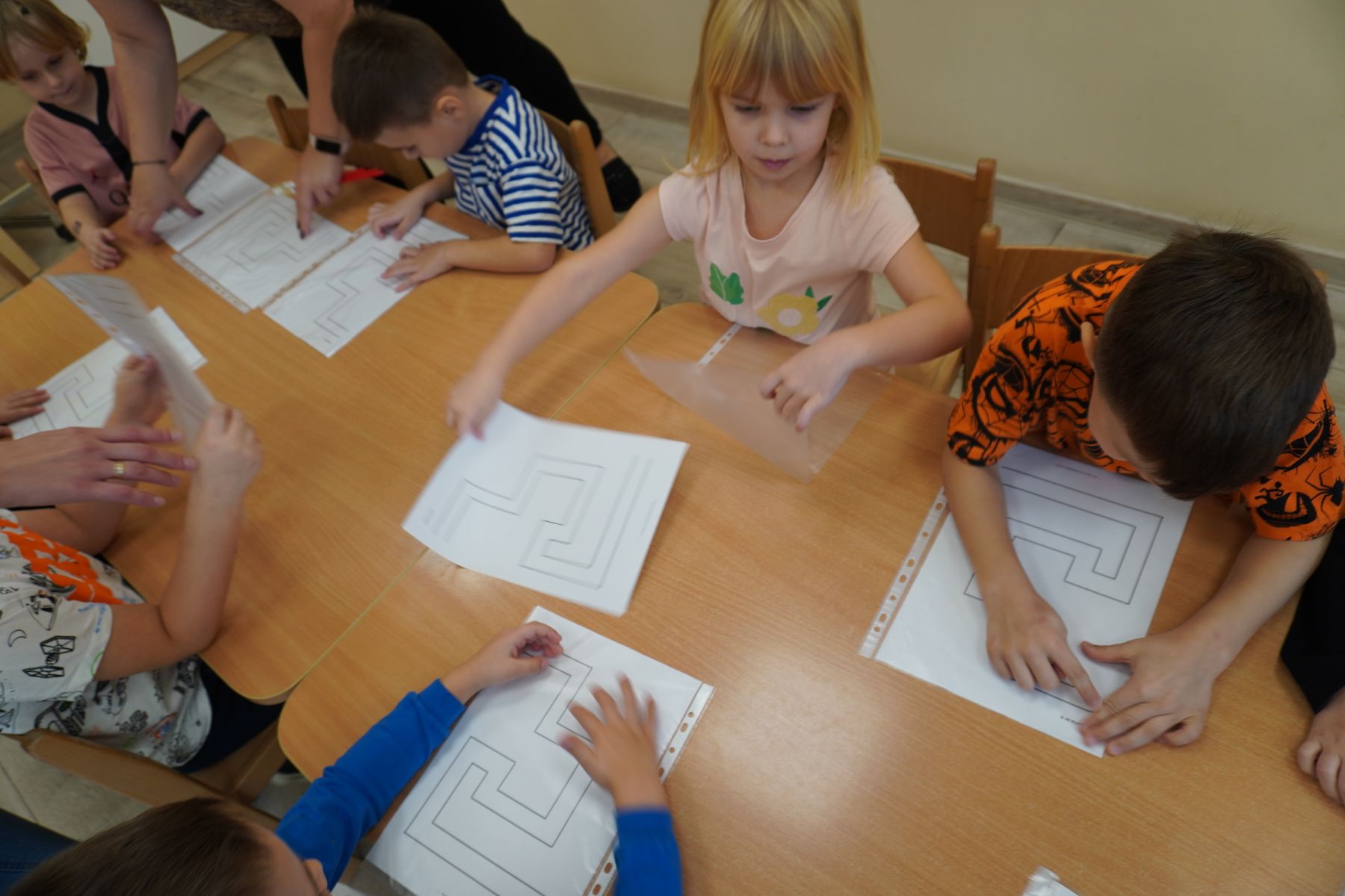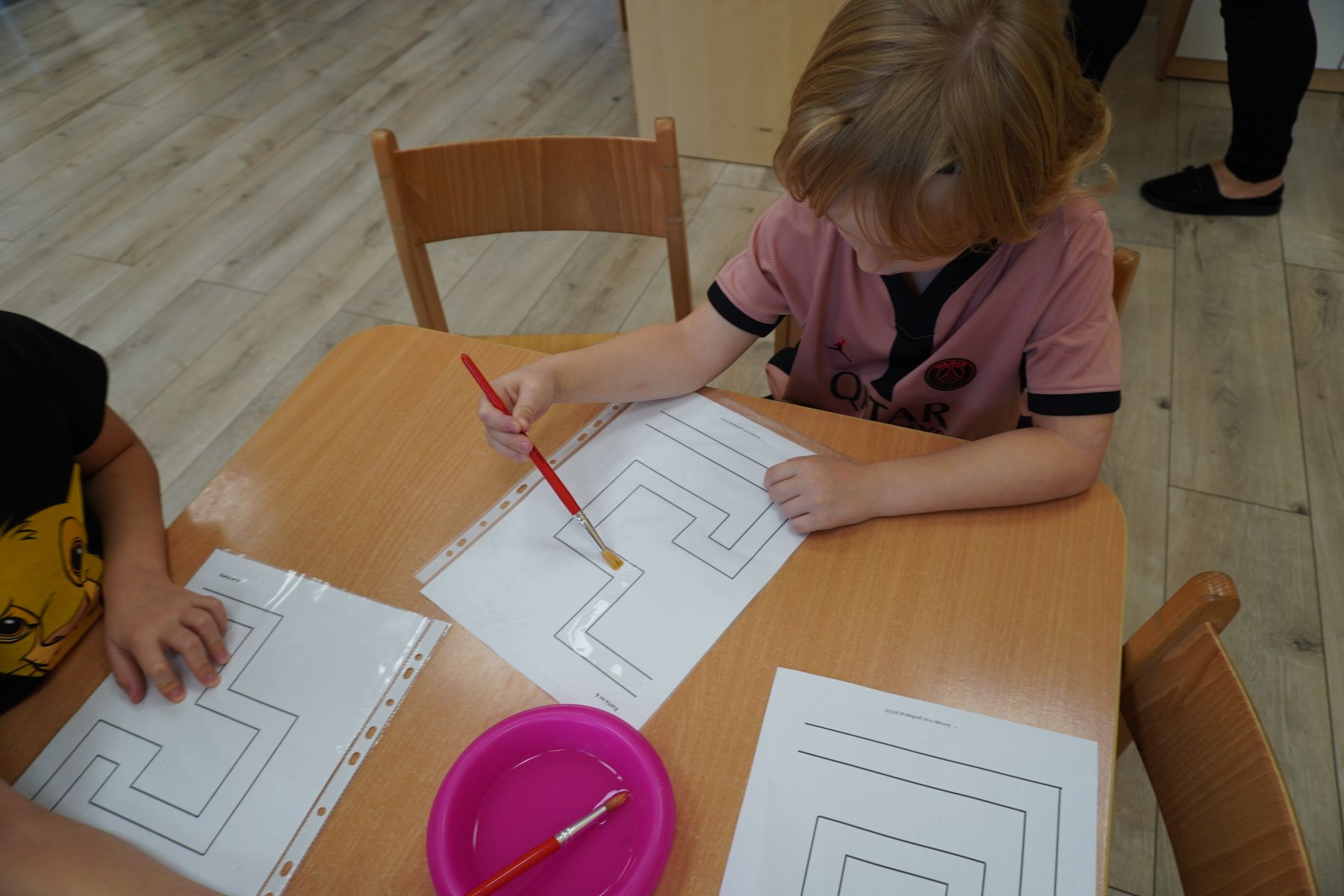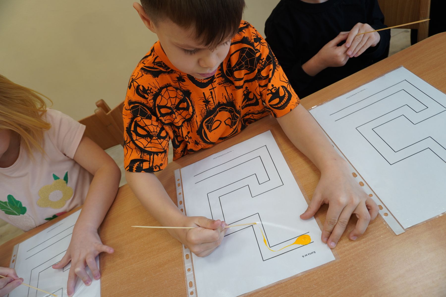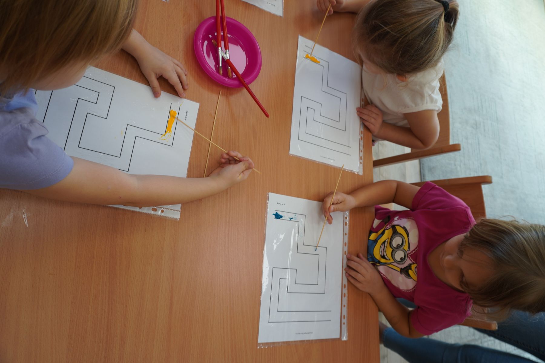 Zadaniem dzieci było przeprowadzenie kropli wody przez tunel za pomocą wykałaczki.