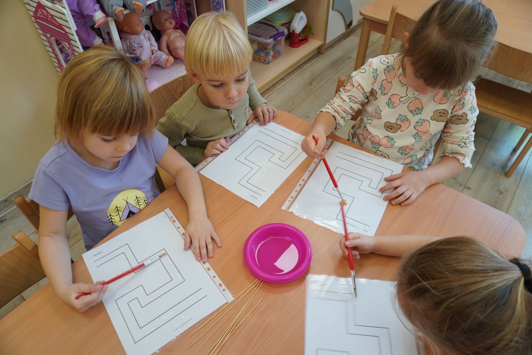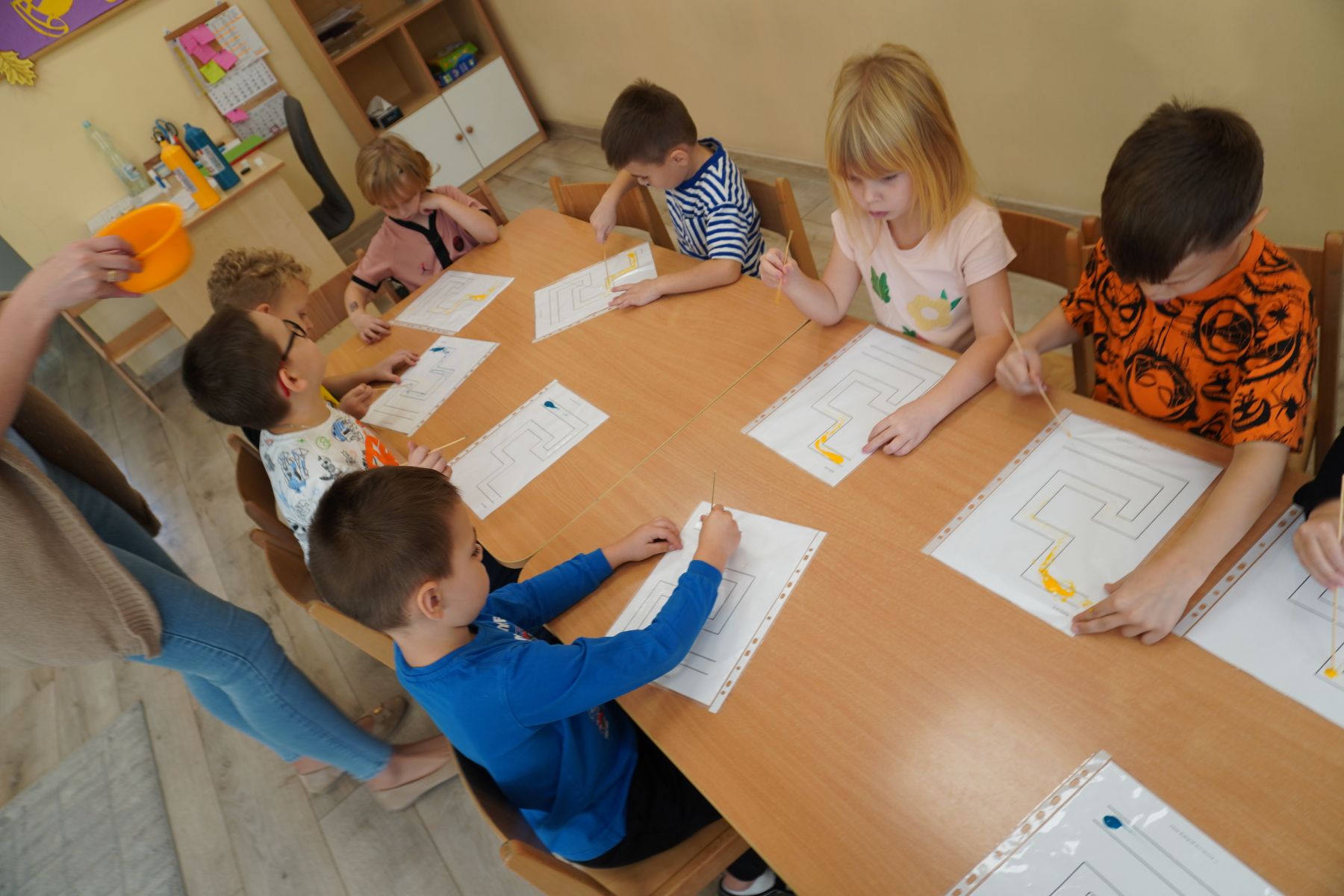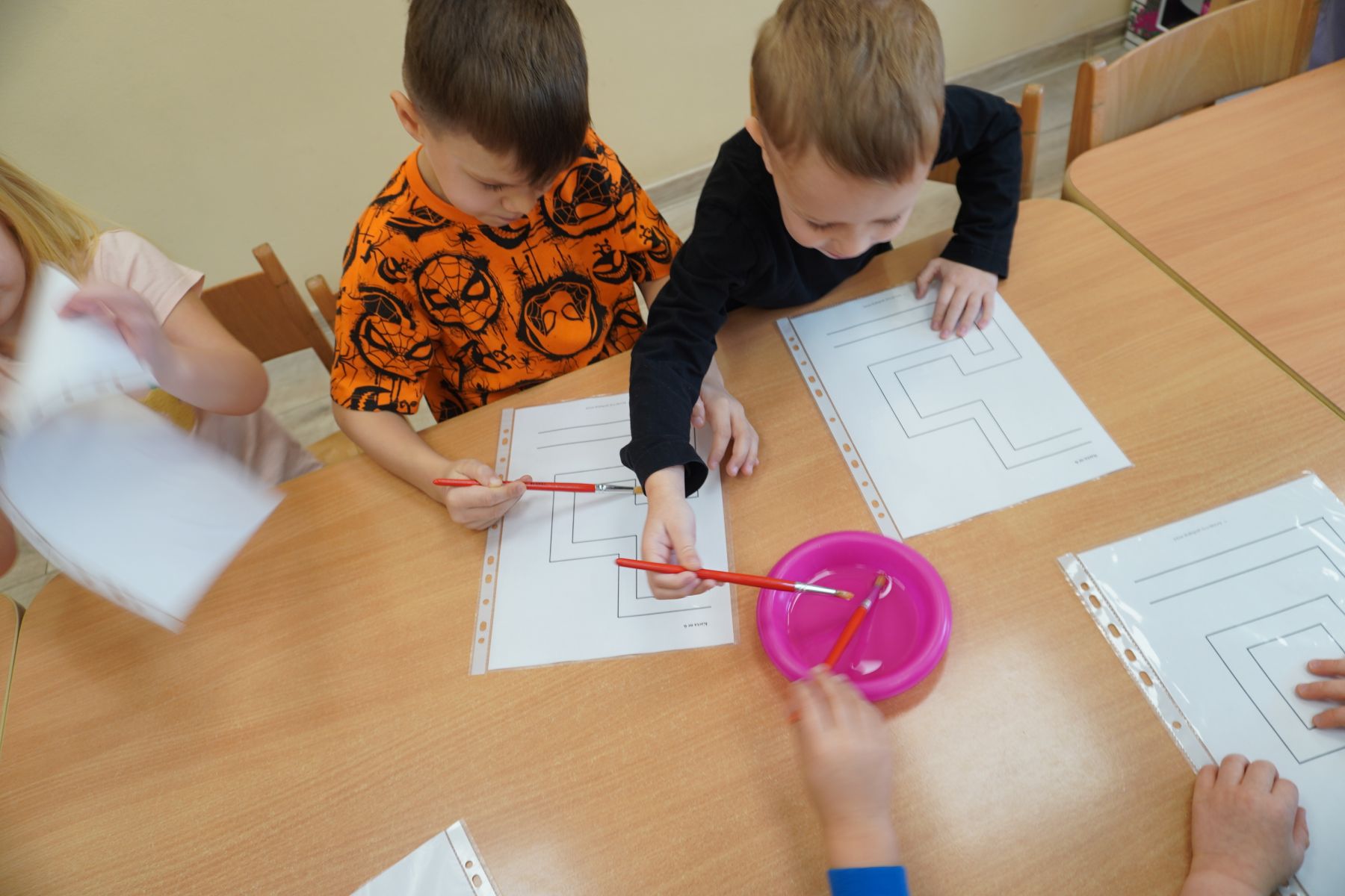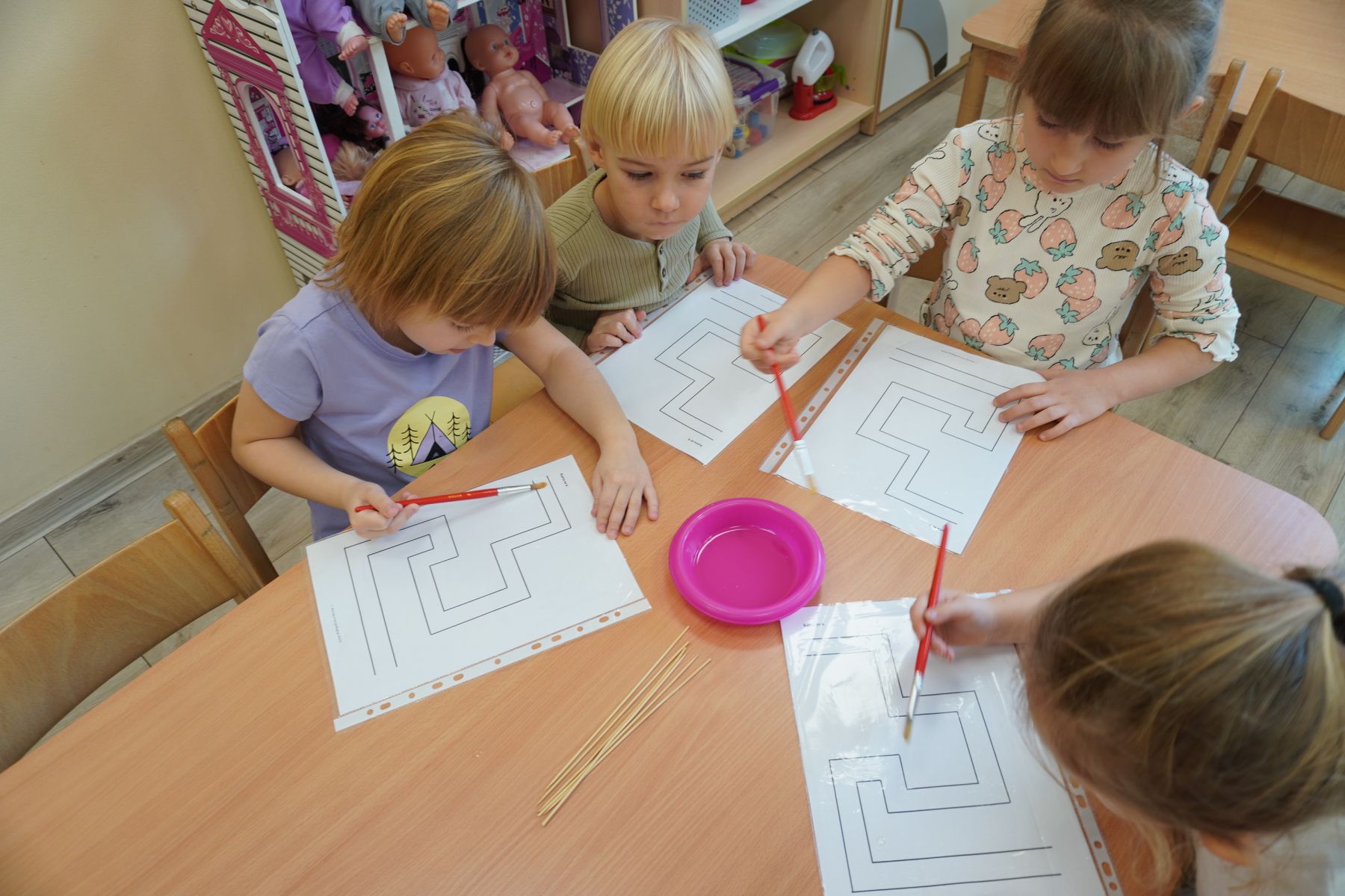 Zadaniem dzieci było przeprowadzenie kropli wody przez tunel za pomocą wykałaczki.