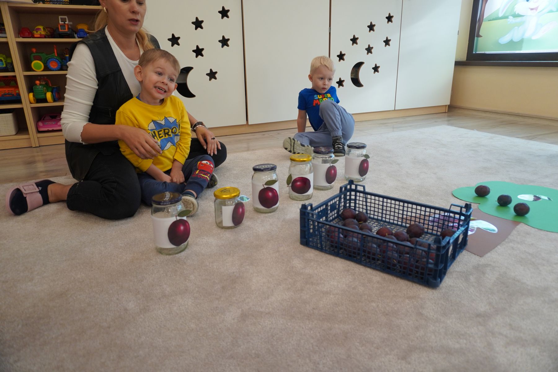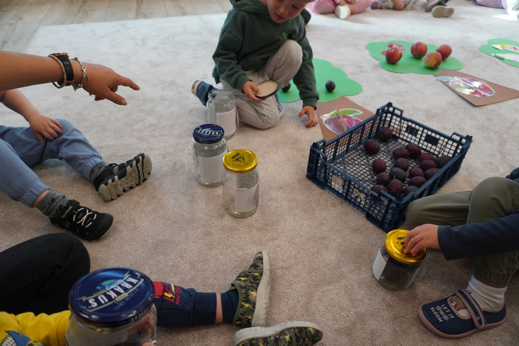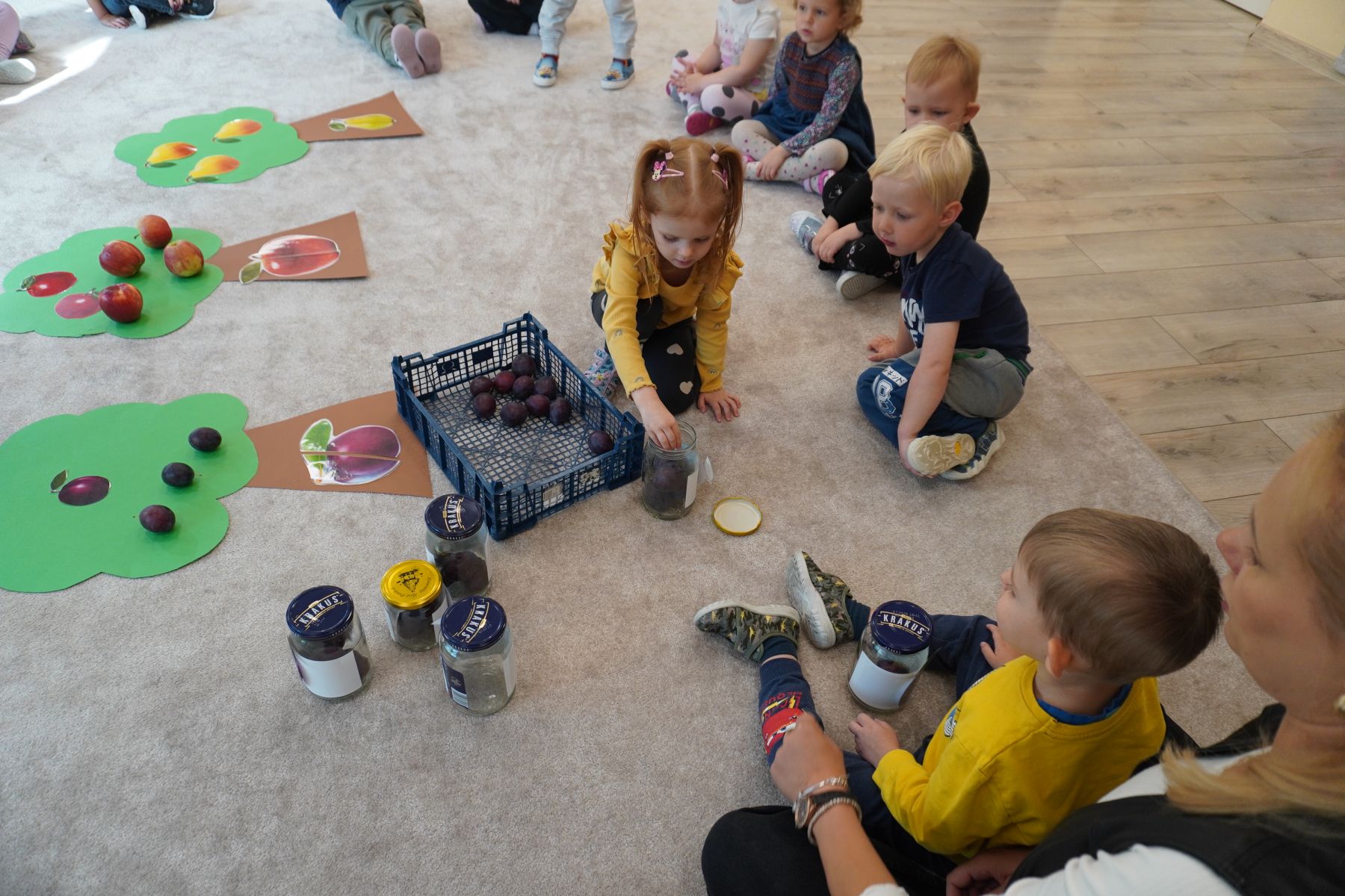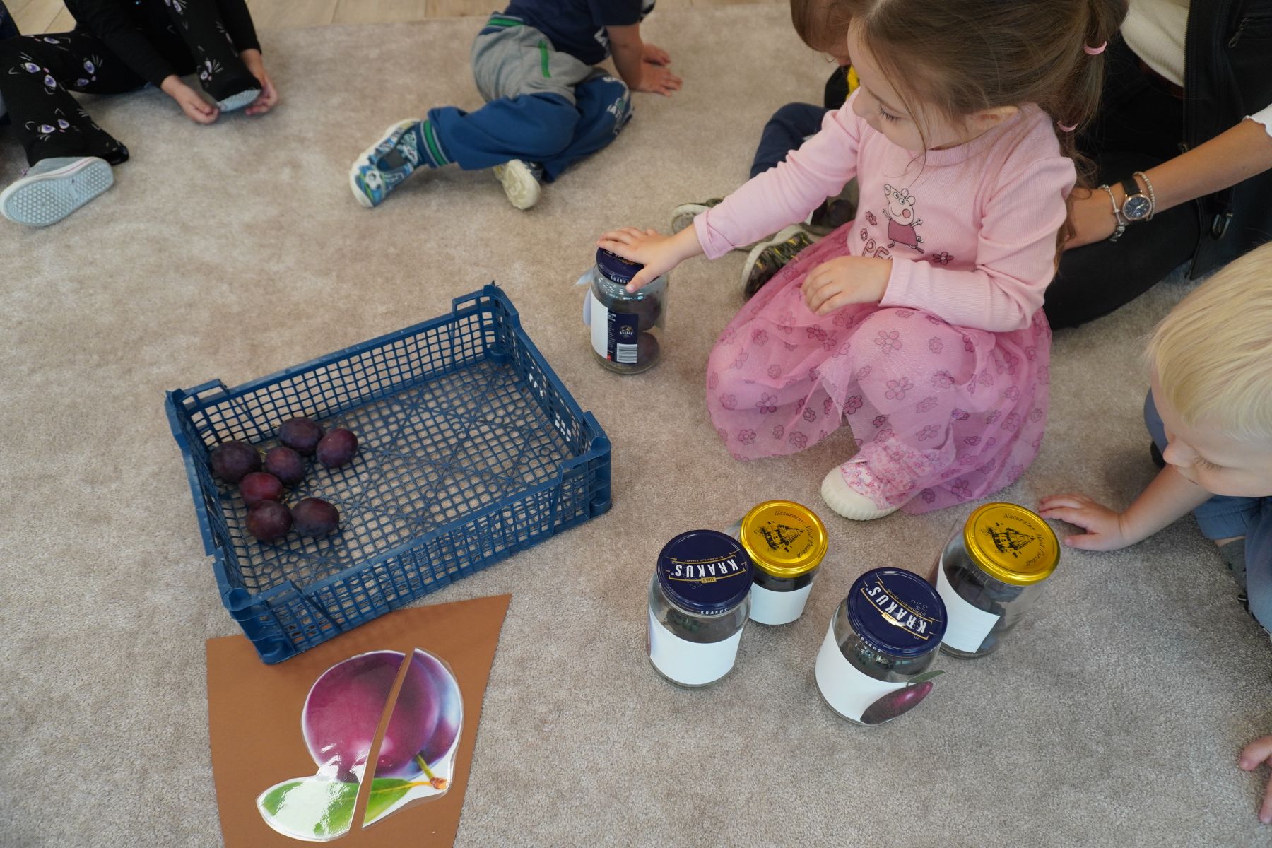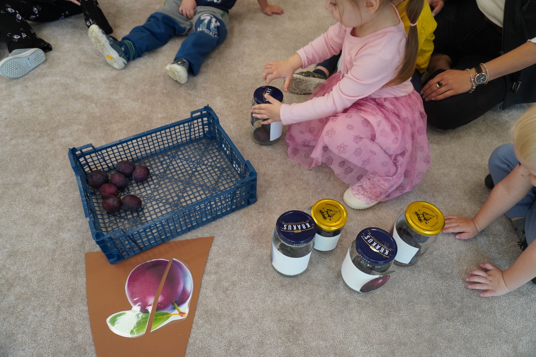 Zadaniem dzieci było dopasowanie zakrętek dopojemników i ich zakręcenie. Druga opcja tej zabawyto przygotowanie zakręconych pojemników, azadaniem dzieci jest ich odkręcenie.