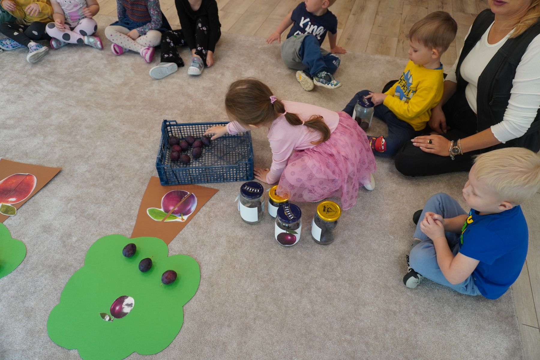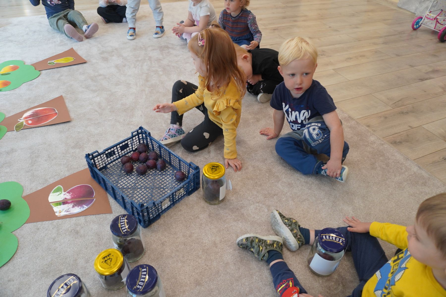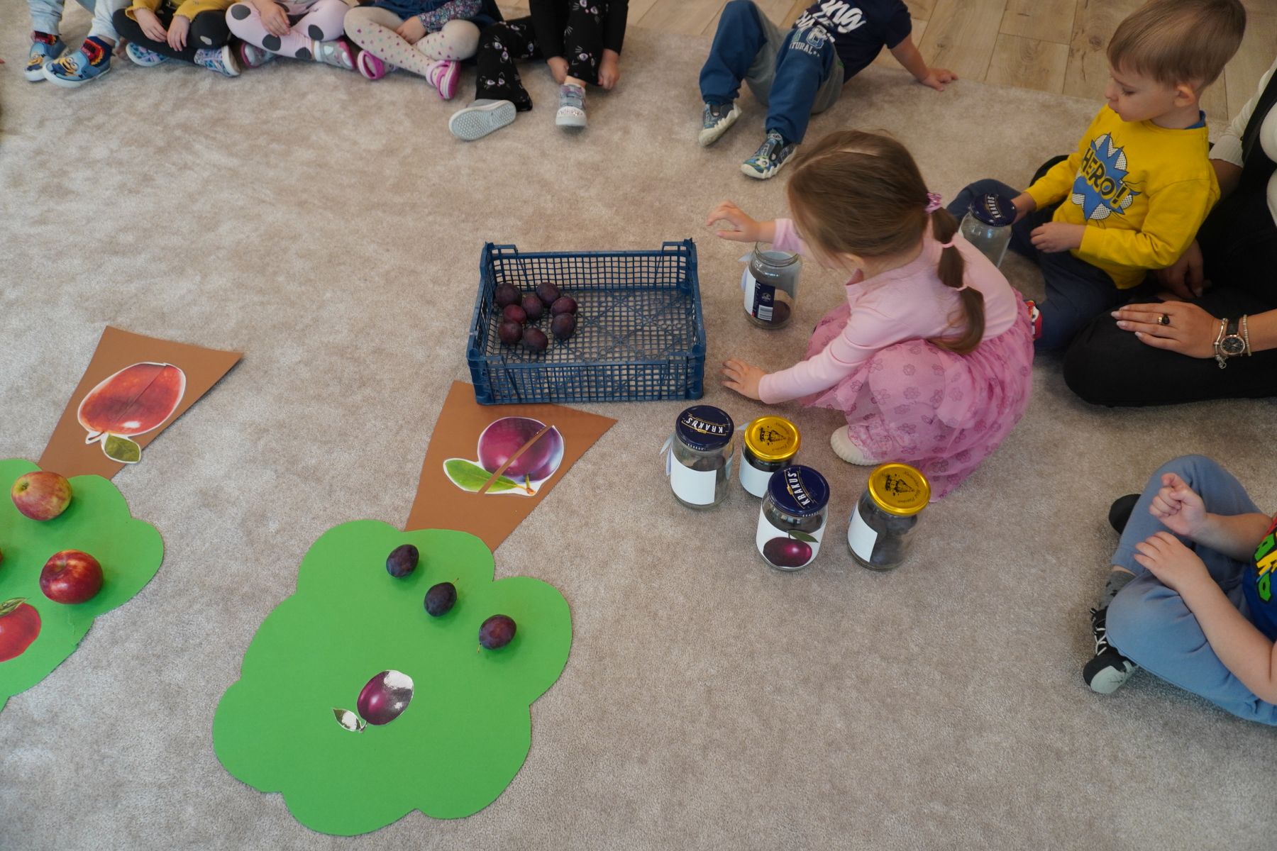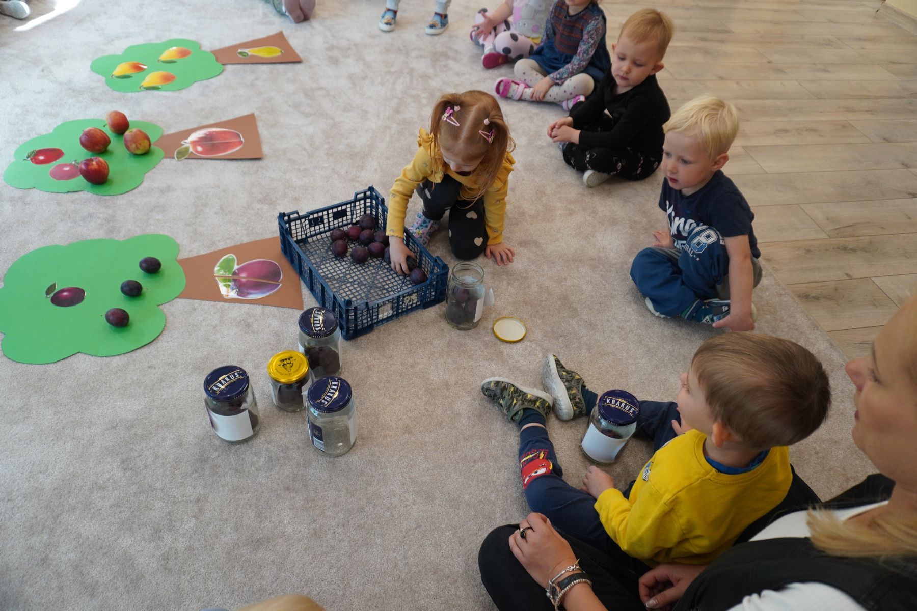 Zadaniem dzieci było dopasowanie zakrętek dopojemników i ich zakręcenie. Druga opcja tej zabawyto przygotowanie zakręconych pojemników, azadaniem dzieci jest ich odkręcenie.