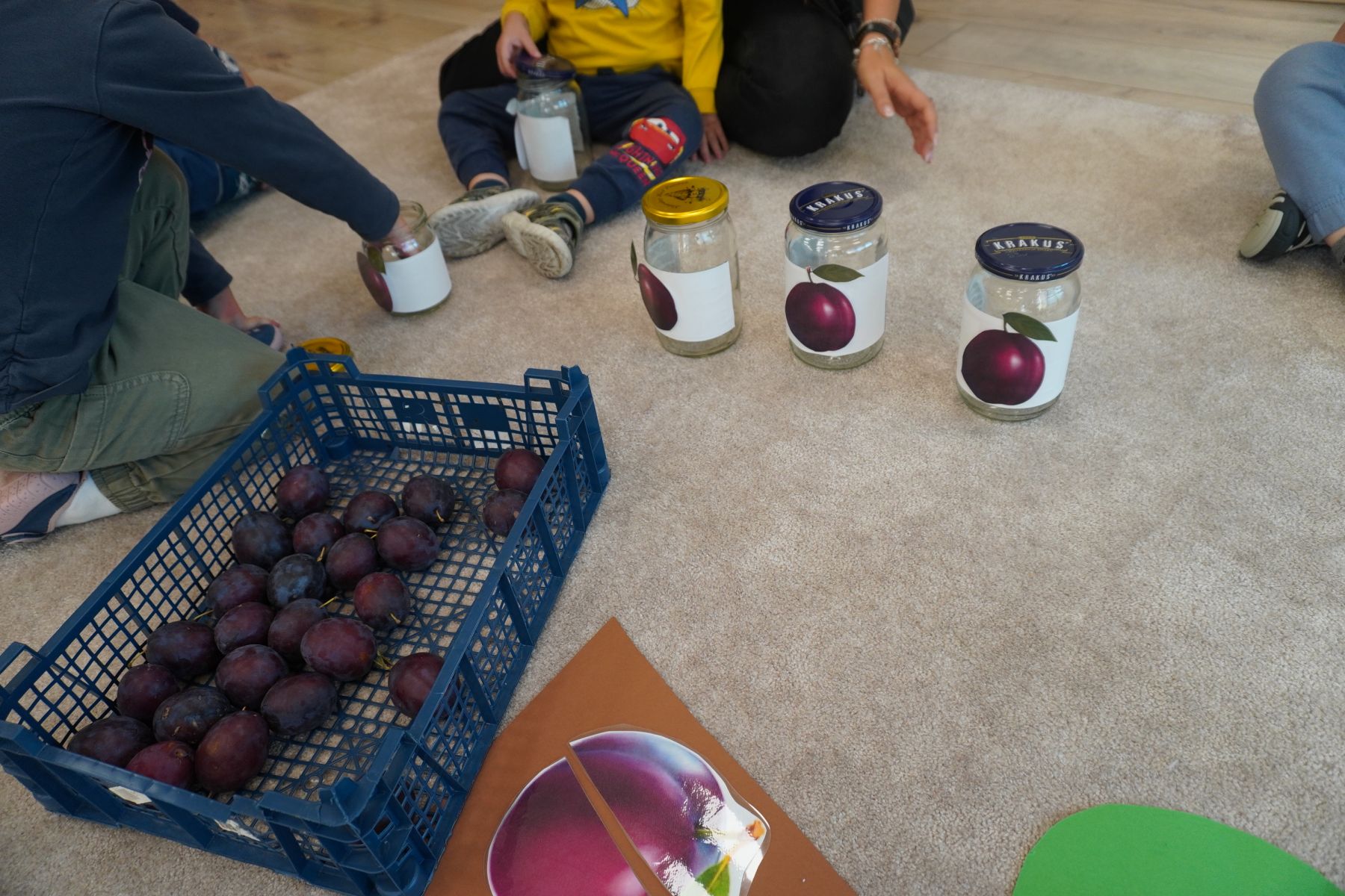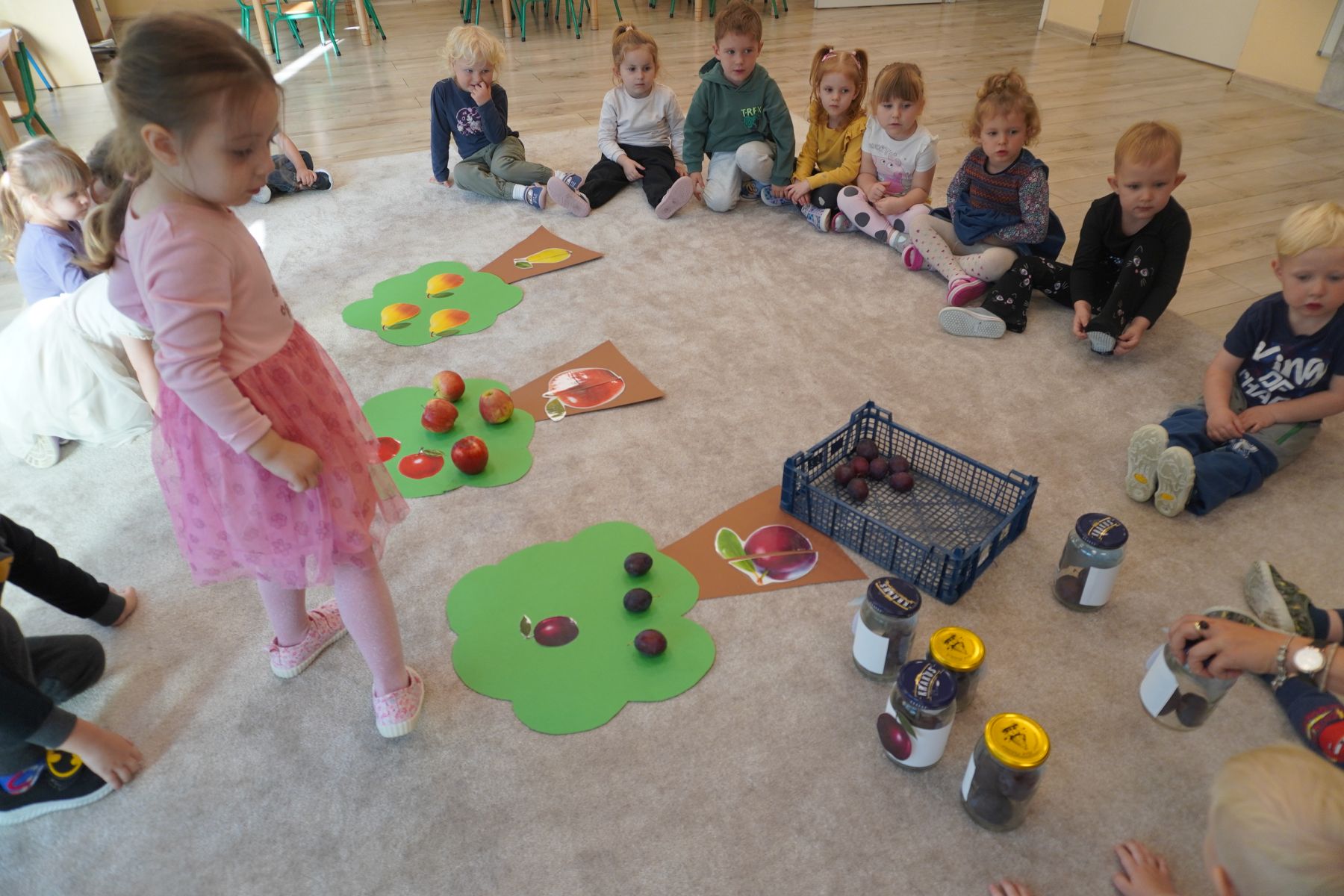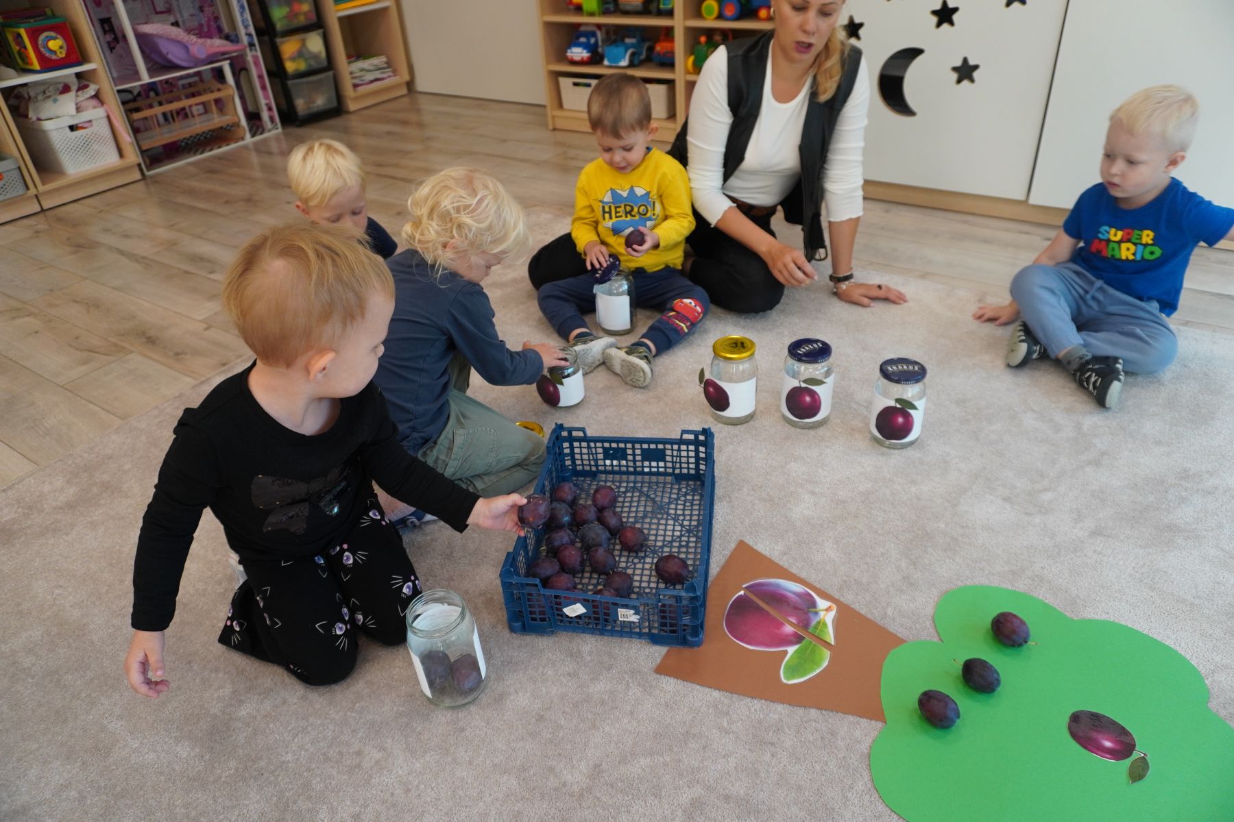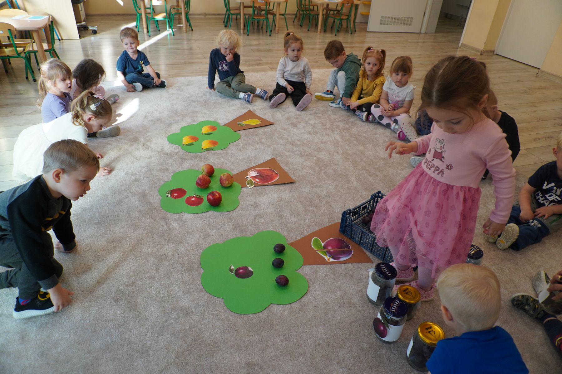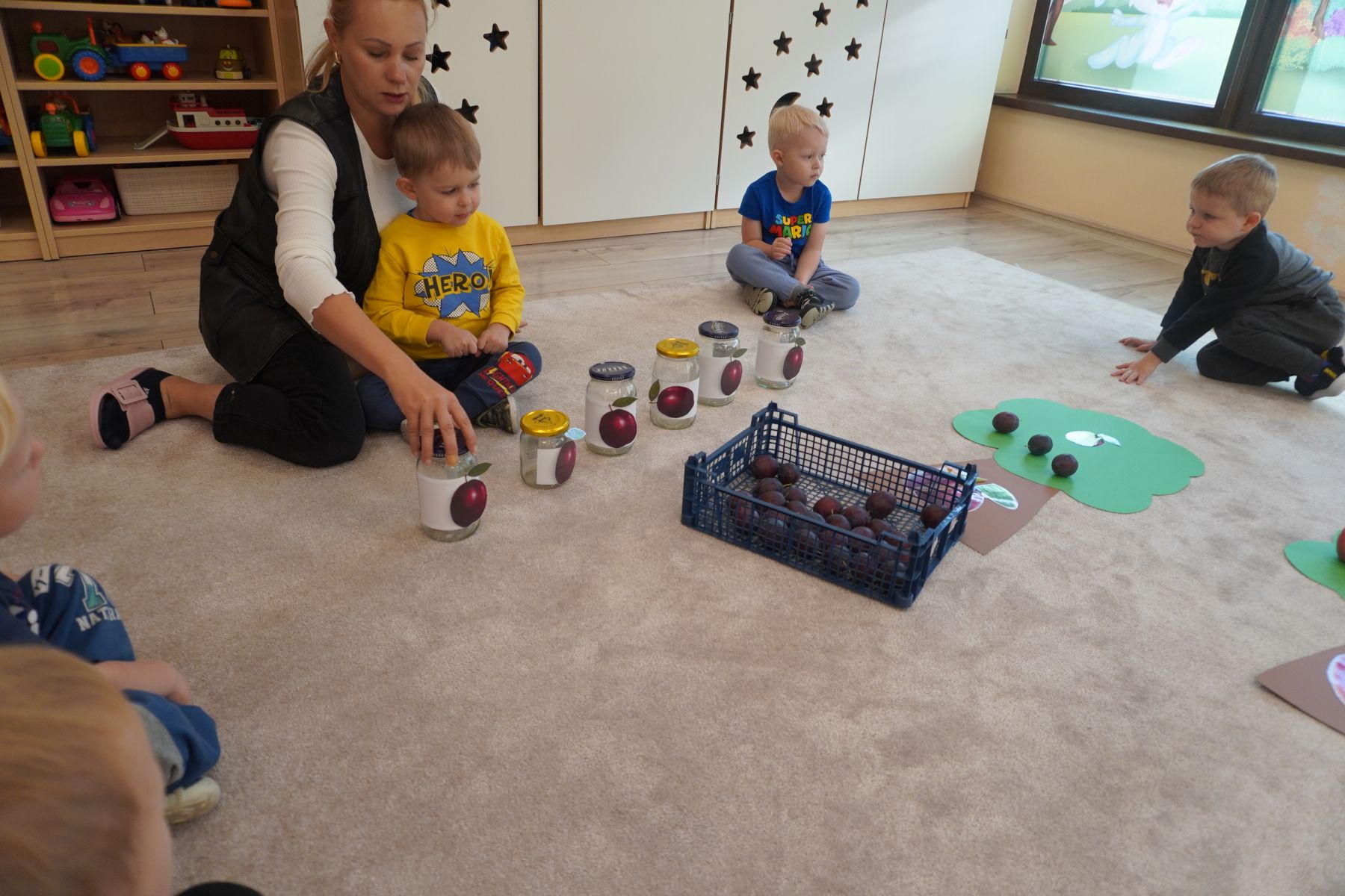 Zadaniem dzieci było dopasowanie zakrętek dopojemników i ich zakręcenie. Druga opcja tej zabawyto przygotowanie zakręconych pojemników, azadaniem dzieci jest ich odkręcenie.